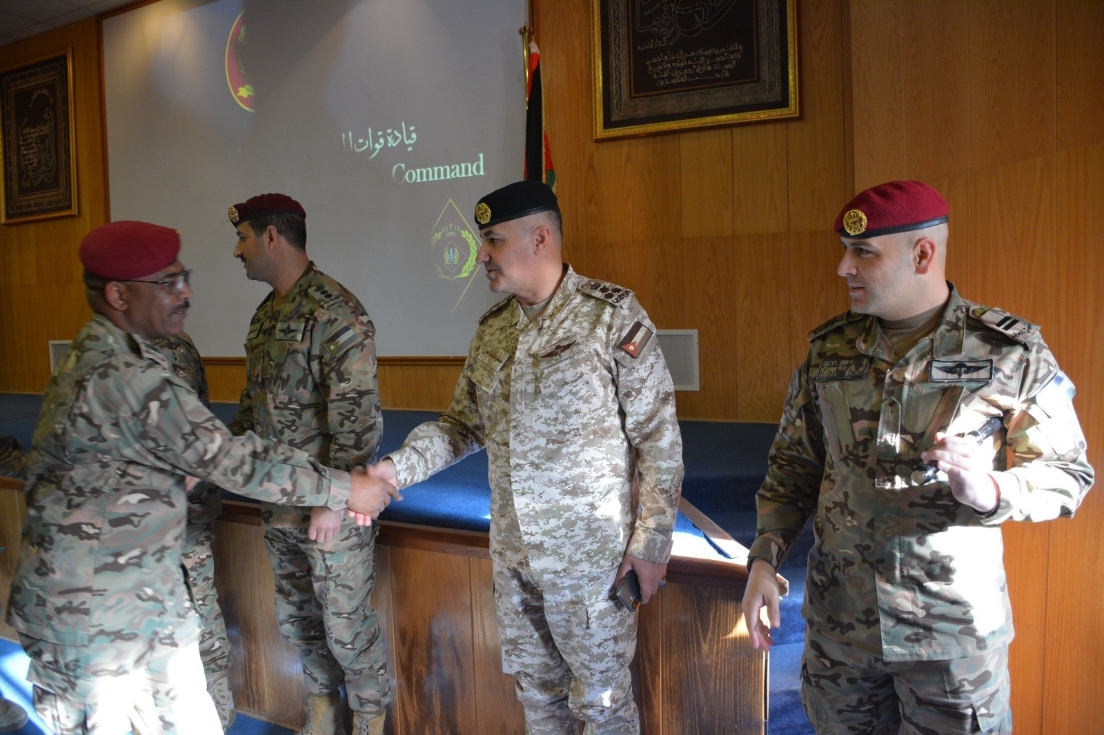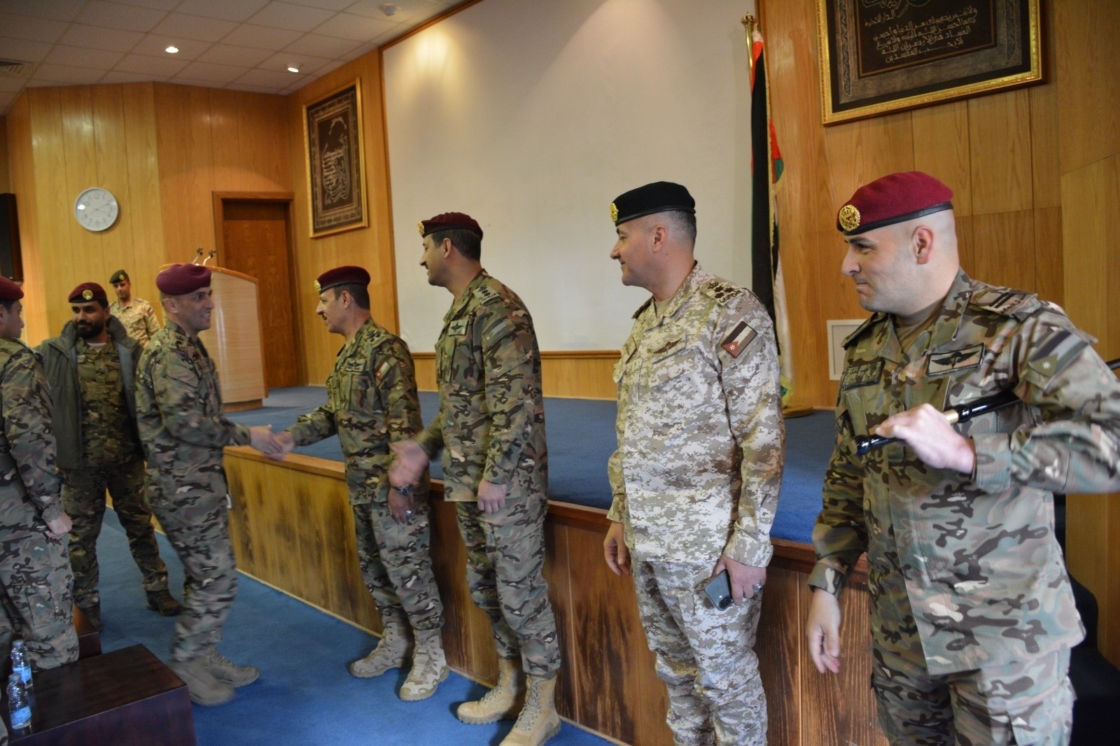 ونقل كبار ضباط القوات المسلحة تهاني وتبريكات القيادة العامة للقوات المسلحة لهم بمناسبة عيد الفطر السعيد، سائلين الله أن يعيد هذه المناسبة على الأمتين العربية والإسلامية بالخير واليمن والبركات، وأن يحفظ جلالة القائد الأعلى للقوات المسلحة الملك عبدالله الثاني المعظم، وسمو الأمير الحسين بن عبدالله الثاني، ولي العهد، ويمتعهما بموفور الصحة والعافية.