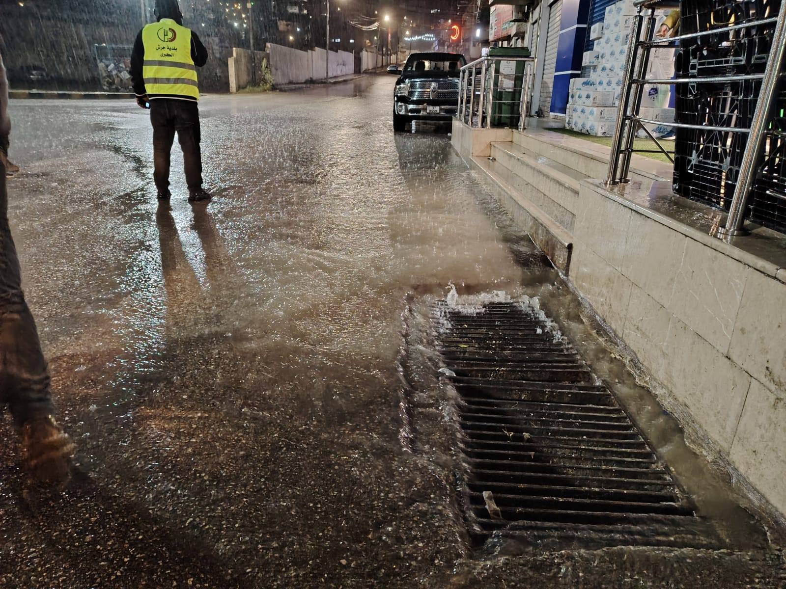 كوادر بلدية جرش تتعامل مع ملاحظات لتجمع المياه