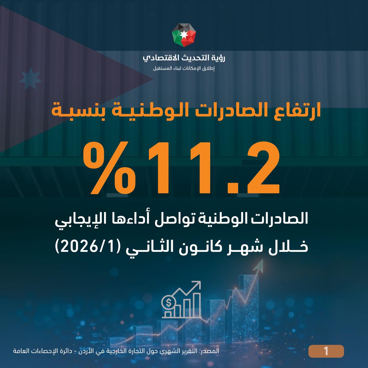 الصادرات الوطنية تواصل أداءها الإيجابي وترتفع 11.2% في كانون الثاني