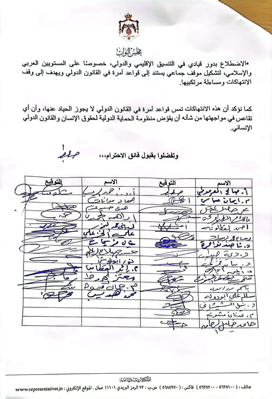 وطالب النواب الحكومة باتخاذ جملة من الإجراءات، أبرزها التحرك الدبلوماسي والقانوني الفوري لوقف هذه الانتهاكات، وتفعيل آليات المساءلة الدولية ضمن منظمة الأمم المتحدة، إضافة إلى دعم أو الدفع باتجاه تحريك الاختصاص أمام المحكمة الجنائية الدولية، سواء عبر الإحالة أو دعم جهود الادعاء العام.