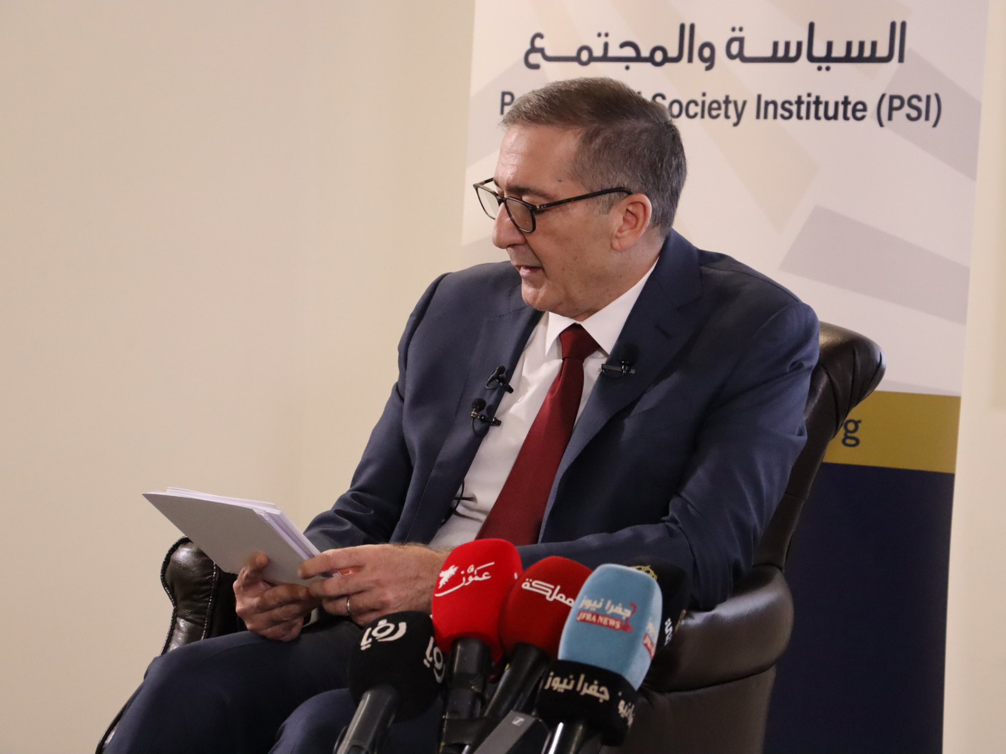 مساء الخير جميعا، اسمحوا لي أولا أن أشكر معالي الدكتور محمد أبو رمان، على استضافتنا اليوم في معهد السياسة والمجتمع، كما أشكر فريق المعهد على التنظيم وهذه الدعوة الكريمة. ويشرفني أن أقف بين هذا الجمع الطيب لنتحاور عن الحرب الإقليمية الراهنة والأمن القومي الأردني.