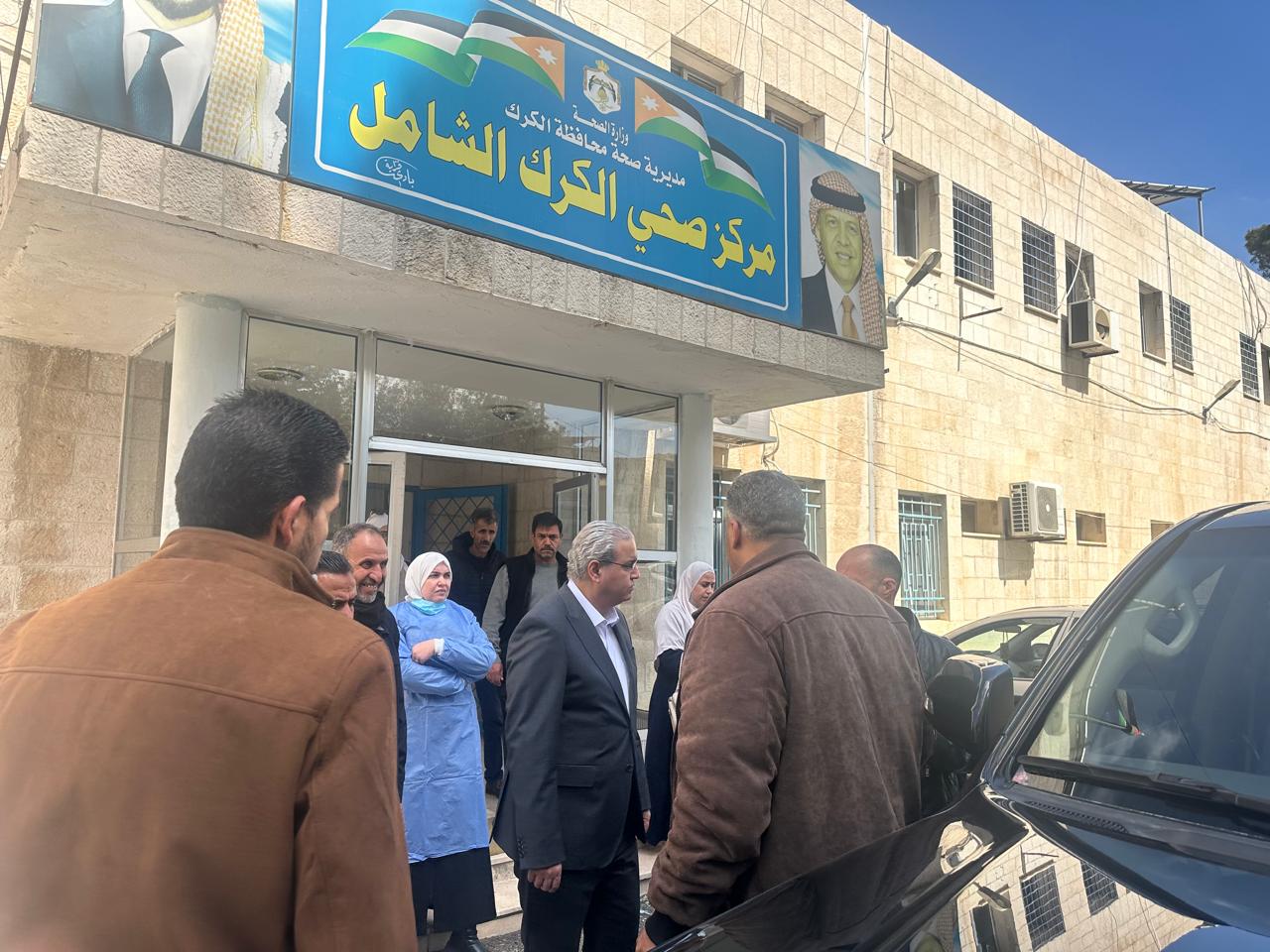 تفقد وزير الصحة الدكتور إبراهيم البدور خلال جولة قام بها اليوم السبت لمحافظتي الطفيلة والكرك، 7 مراكز صحية شاملة هي مركز صحي الكرك، ومركز صحي مؤتة، ومركز صحي المزار، ومركز صحي ذات راس، ومركز صحي العيص، ومركز صحي الطفيلة، ومركز صحي بصيرا، بالاضافة إلى مستشفى الطفيلة الحكومي، حيث اطّلع خلال الزيارة على سير العمل ووقف على أبرز التحديات التشغيلية والفنية، خاصة ما يتعلق بنقص الكوادر وتباين مستوى الخدمات بين المراكز الصحية، ومستوى هذه الخدمات وآليات العمل المتبعة في هذه المرافق.
