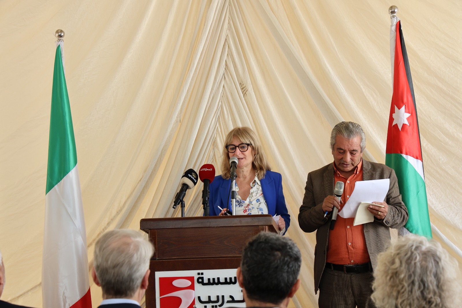 ومندوب السفير الايطالي/ مدير الوكالة الايطالية للتنمية روبرتو سولاتزو وكريستيانا بارتولوتشي من مركز فورمدل الإيطالي للبناء والتدريب ومدير عام الشركة الأردنية للتشغيل والتدريب العميد أشرف عليمات ورئيس البلدية المهندس ماهر العدوان.