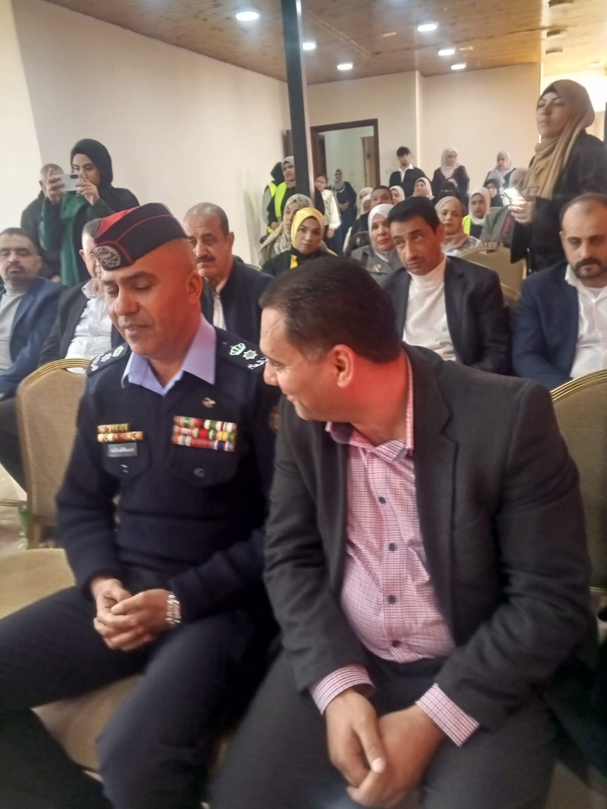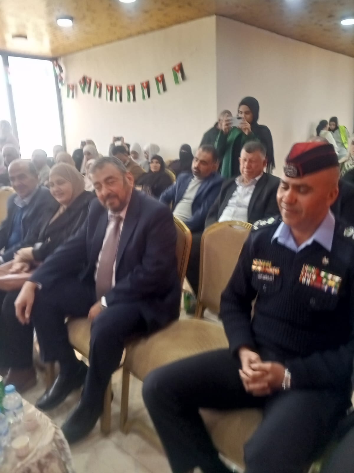 النقيب أنس الشخاترة رئيس قسم الأمن الوقائي في مركز أمن لواعي عين الباشا ليشرح دور الأمن العام في حماية المواطن وحماية المؤسسات العامة والخاصة والمشاركة الفعالة في كل المناسبات الوطنية معلنا أننا نعتز ونفتخر بجلالة الملك عبد الله الثاني المعظم وفي سياق متصل أشاد الرئيس الفخري لجمعية مساندة للتمكين السيد جمال الشوابكه بدور الهاشميين وعلى رأسهم جلالة الملك عبد الله الثاني في دعم الوطن العربي الكبير والإسلامي وعلى رأسهم القضية الفلسطينية ودور الجيش العربي المصطفوي في حماية هذا الوطن وحماية هذا المواطن في كل الظروف والمحن ثم تحدث الدكتور علي الوحيذي ليؤكد أن القيادة الهاشمية بقيادة جلالة الملك عبد الله الثاني المعظم هي صمام الأمان للوحدة الوطنية وهي المدافع الحقيقي عن القضية الفلسطينية حتى بناء الدولة الفلسطينية المستقلة وعاصمتها القدس الشريف مضيفا أننا في هذا اليوم نستذكر دماء شهداء الجيش الأردني العظيم الذي سطر ملامح التاريخ في معركة الكرامة .