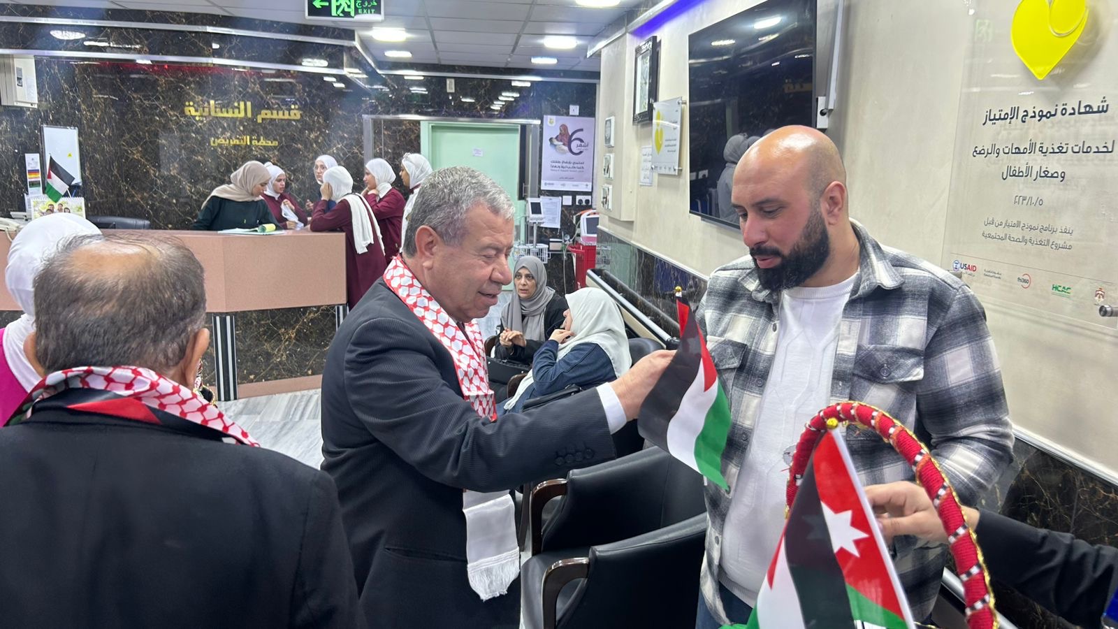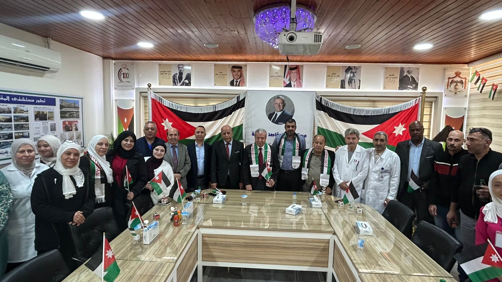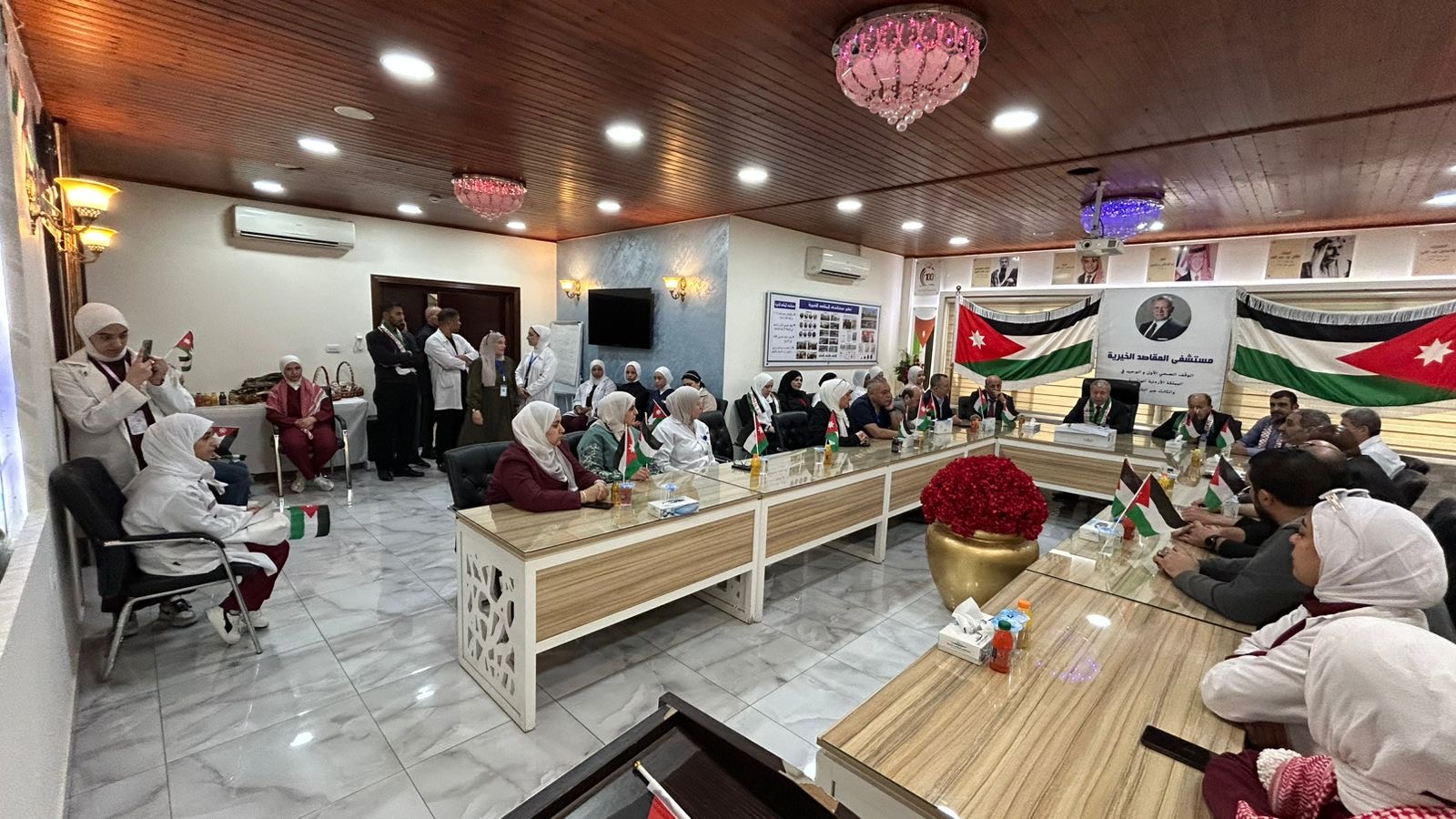 احتفل مستشفى المقاصد الخيرية بيوم العلم الأردني، برعاية مدير عام المستشفى الدكتور بسام الشلول، وحضور عدد من المدراء ورؤساء الأقسام الطبية والتمريضية والفنية والإدارية، ومشاركة طلبة الجامعات الأردنية المتدربين في المستشفى، من بينهم طلبة كلية الأميرة ثروت.