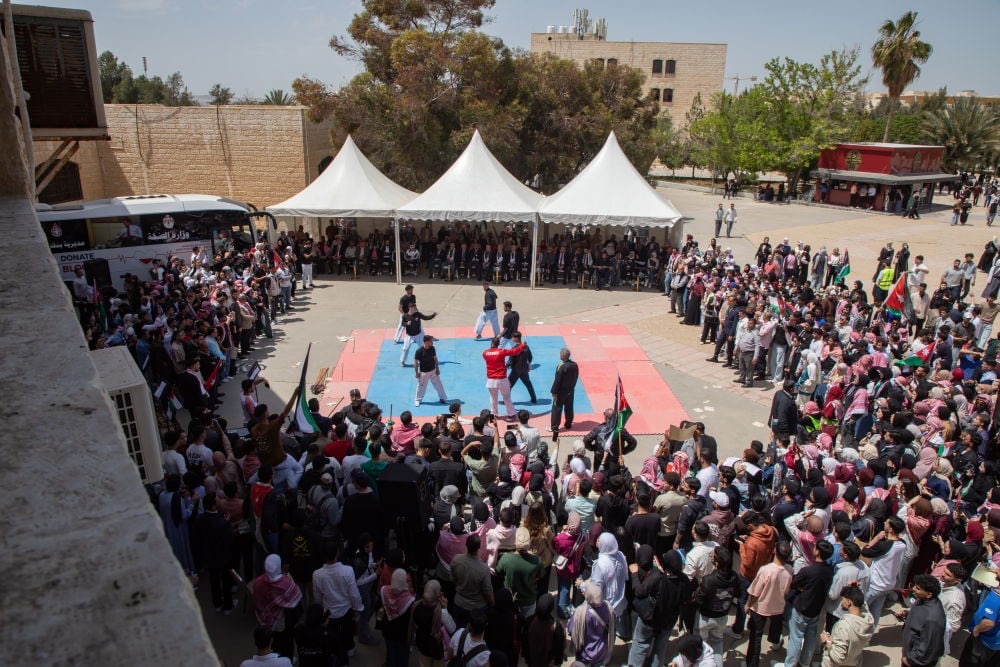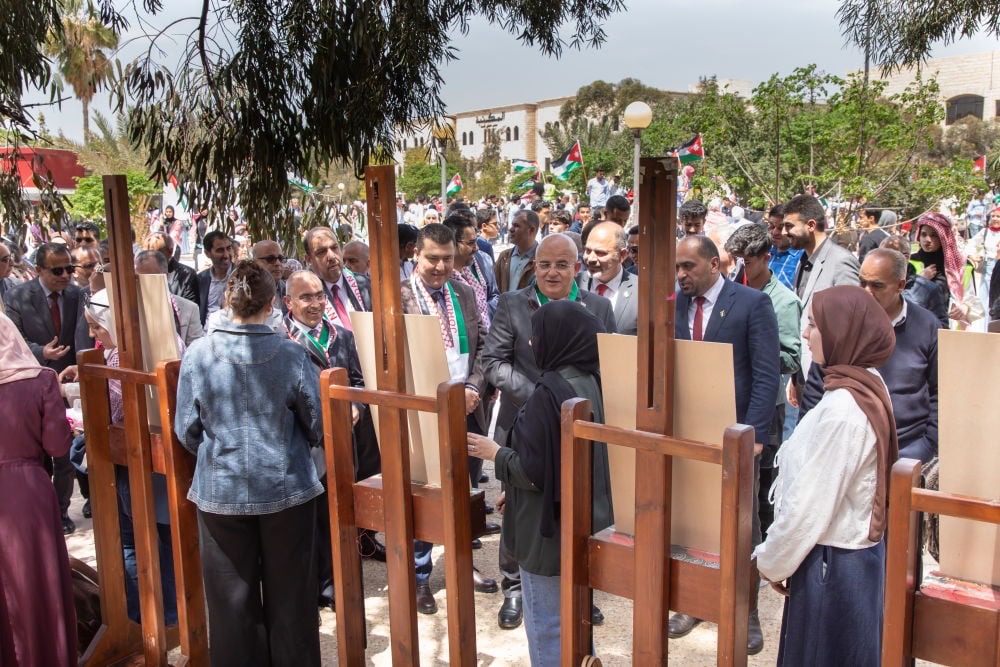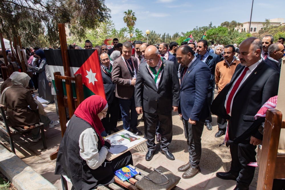 واستهلت الجامعة احتفالاتها بانطلاق مسيرة وطنية من امام مبنى الملك الحارث الرابع يتقدمها رئيس الجامعة الأستاذ الدكتور خالد الحياري، ونواب الرئيس، وعمداء الكليات، إلى جانب حشد واسع من أعضاء الهيئتين الأكاديمية والإدارية والطلبة، وصولًا إلى سارية العلم في قلب الجامعة، حيث ارتفعت الراية الأردنية شامخة على أنغام السلام الملكي، في مشهد وطني عكس رمزية العلم بوصفه عنوانًا للسيادة والكرامة وتاريخًا حافلًا بالتضحيات والإنجازات .