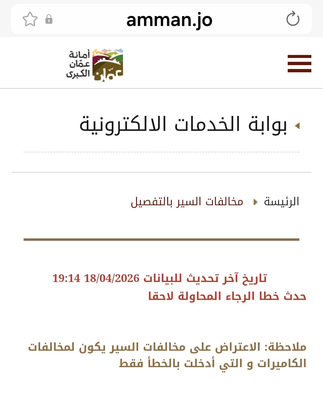 مع إعلان أمانة عمان عن اليوم كآخر موعد للحصول على خصم 30% في حالة تسديد المخالفات المرورية، فقد واجه مواطنون كثيرون عوائق سواء عبر تطبيق سند أو عبر رابط تفاصيل المخالفة التي وصلتهم من خلال رسائل على هواتفهم، للدخول ودفع المخالفات.