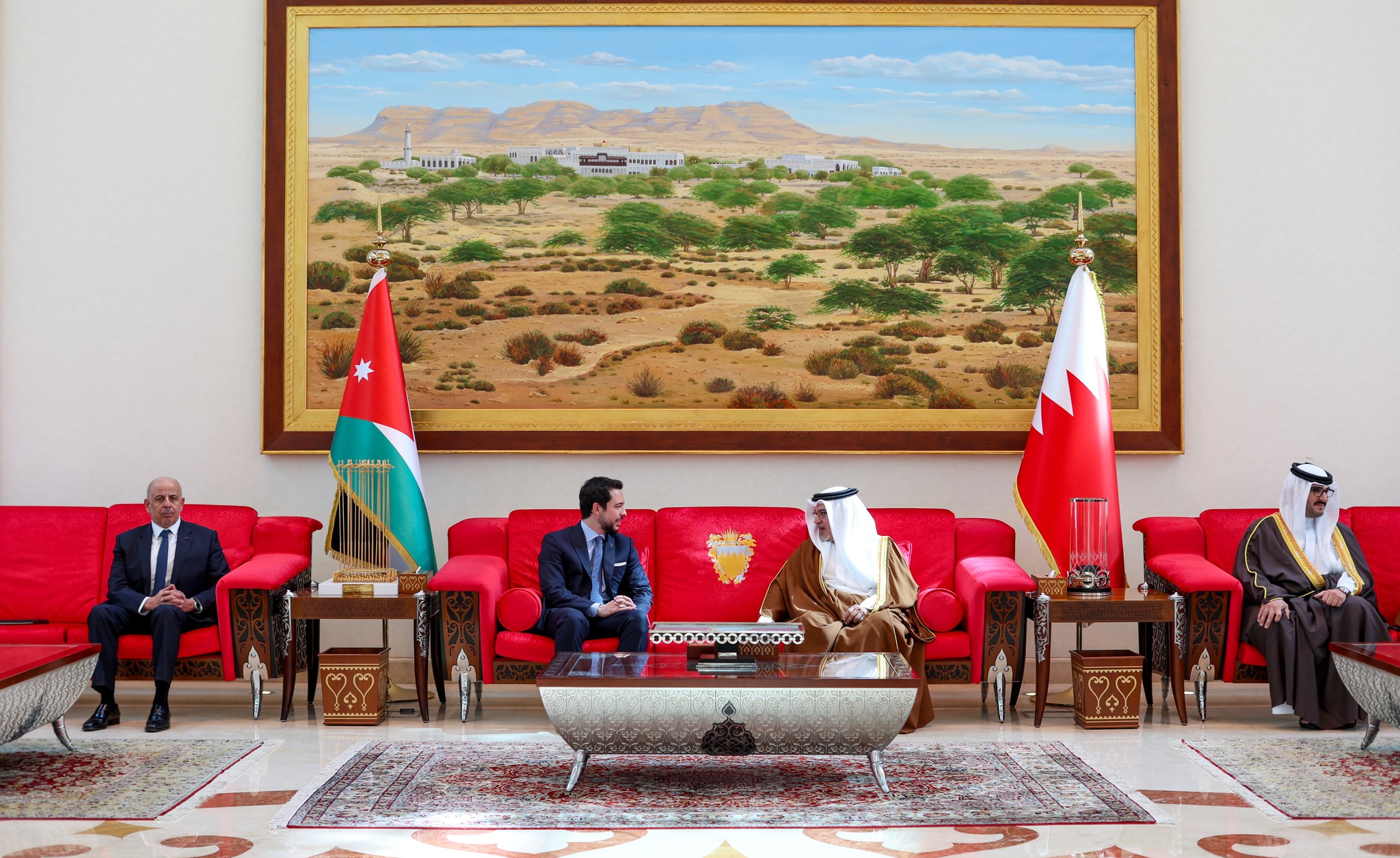 ونقل سموه، خلال اللقاء الذي عقد في مملكة البحرين بحضور سمو الأمير سلمان بن حمد آل خليفة ولي العهد رئيس مجلس الوزراء البحريني، تحيات جلالة الملك عبدالله الثاني إلى أخيه جلالة الملك حمد، وتمنياته له بدوام الصحة والتوفيق، كما حمّل جلالة الملك حمد، سمو ولي العهد تحياته لأخيه جلالة الملك.