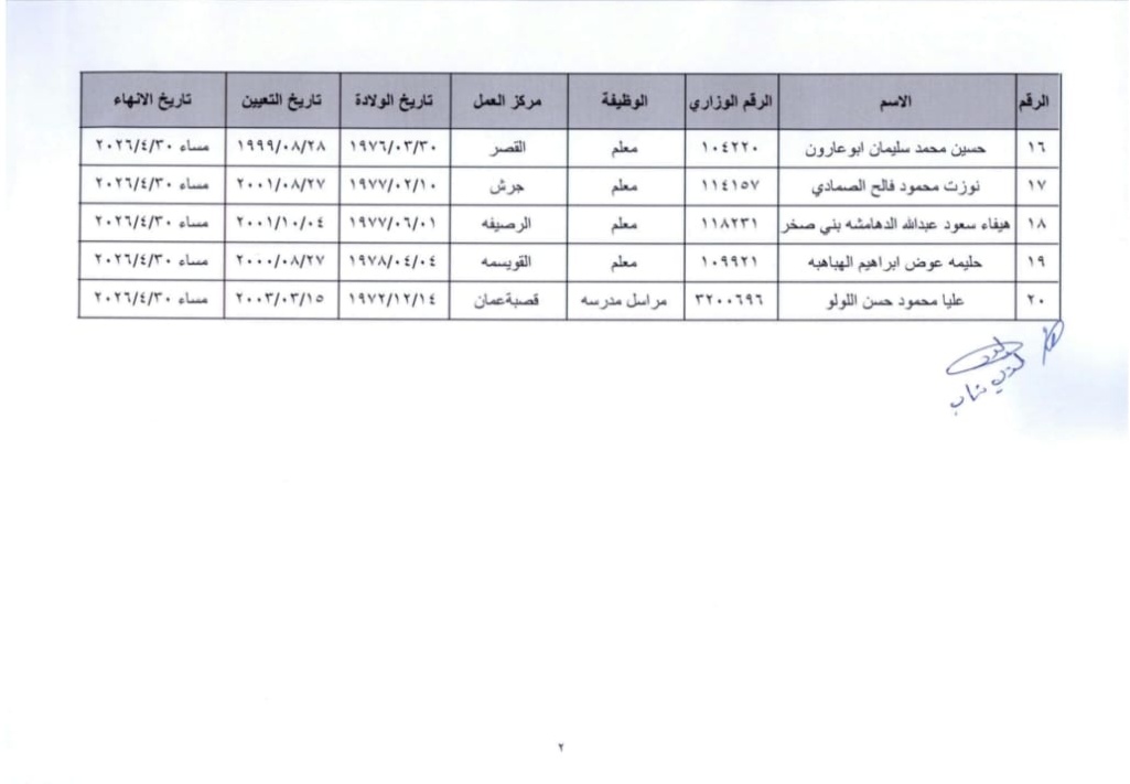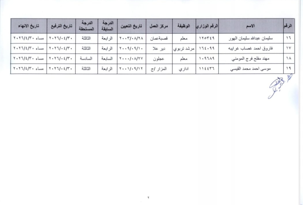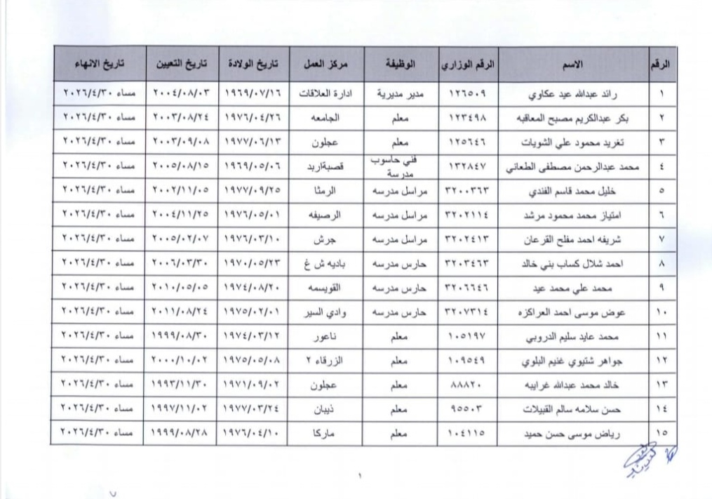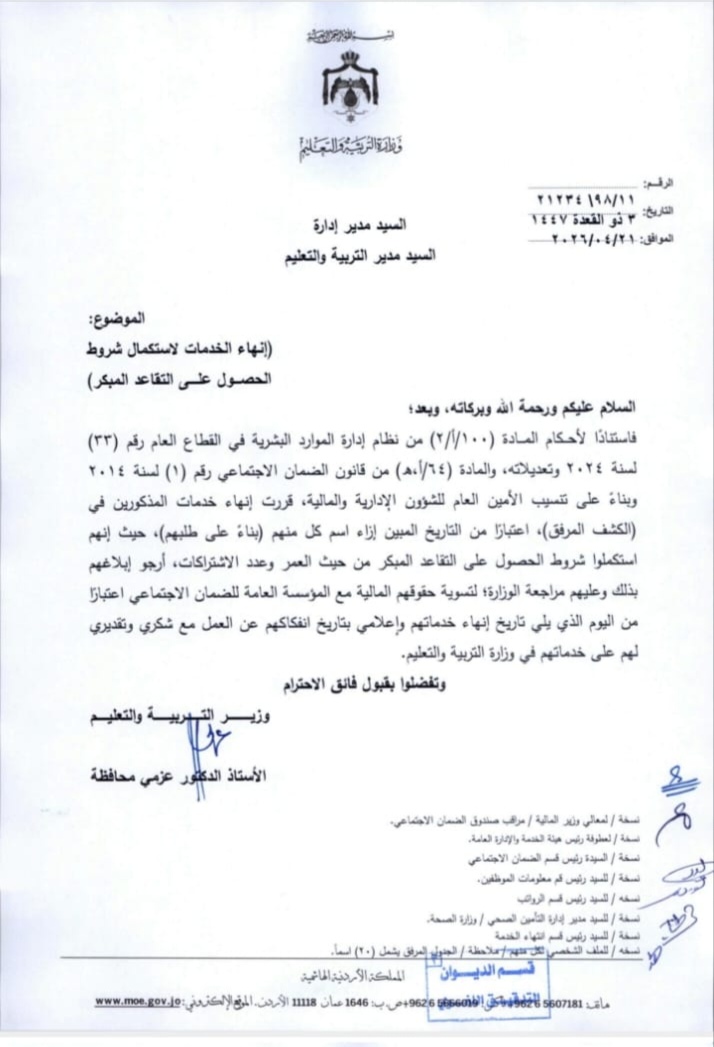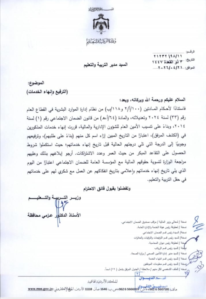 تقاعدات وانهاء خدمات في وزارة التربية(أسماء)