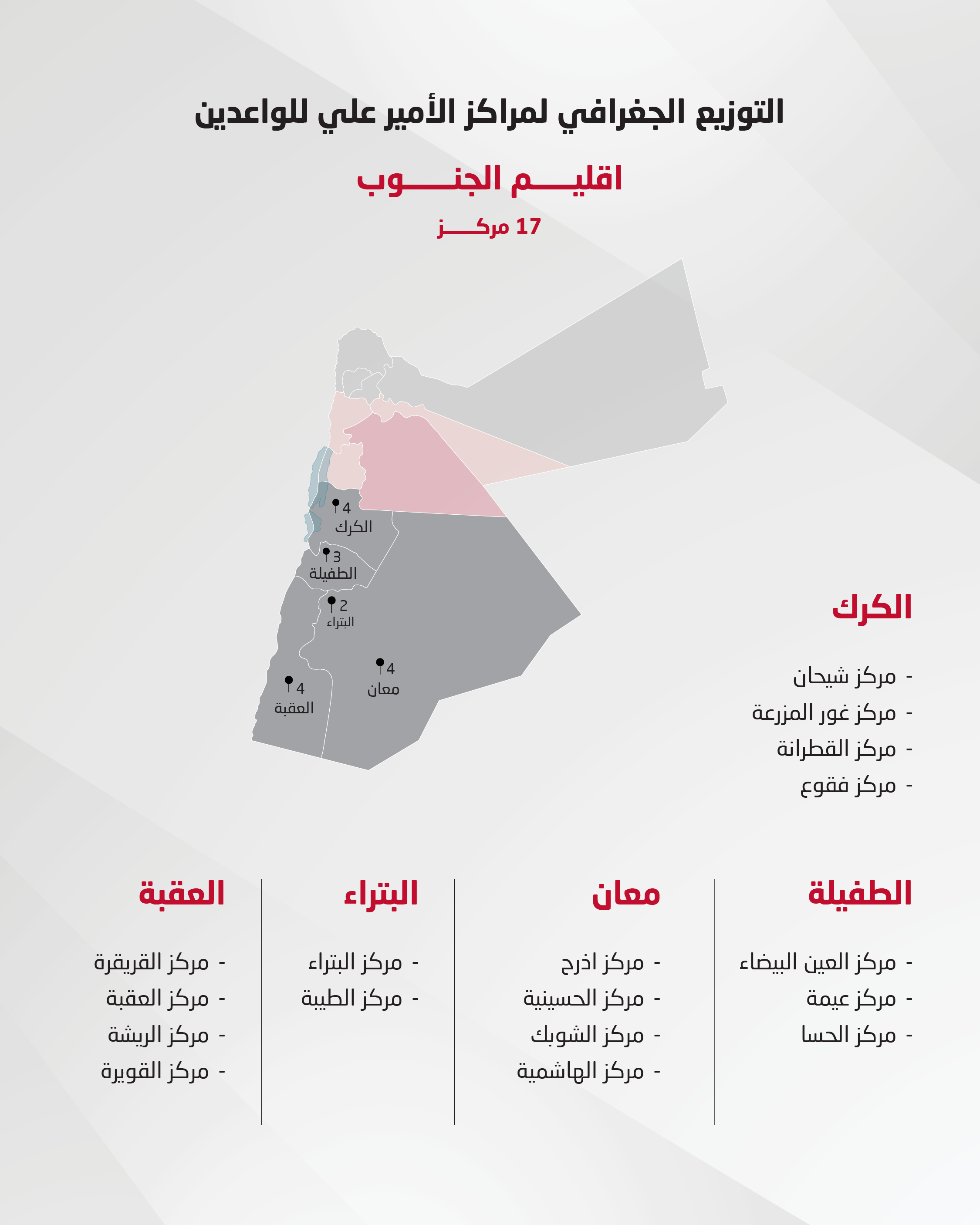 ويشمل المشروع ثمانية مراكز تدريبية للواعدات موزعة على عدد من المحافظات: عمّان، الزرقاء، إربد، عجلون، جرش، الكرك، والعقبة، بهدف توفير فرص تدريب متكافئة للاعبات الموهوبات.