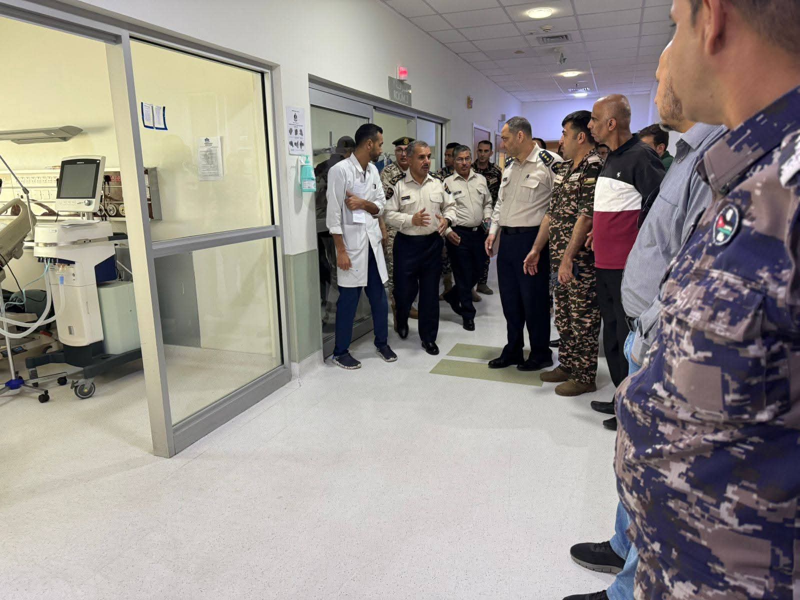 وفي سياق متصل قام عطوفته بزيارة الزملاء المصابين إثر حادث السير المؤسف وذلك في مستشفى الأمير هاشم للاطمئنان على حالتهم الصحية حيث وجّه بتقديم الرعاية الطبية اللازمة ومتابعة أوضاعهم بشكل حثيث.