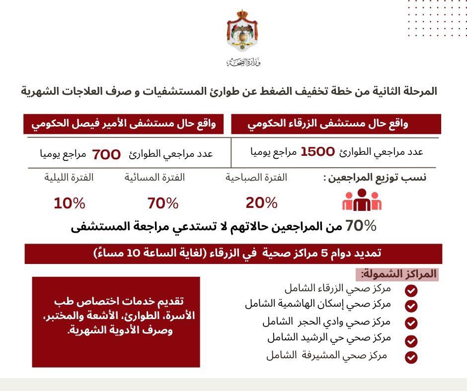 بعد أن أثبتت المرحلة الأولى نجاحها في تخفيف الضغط عن أقسام الطوارئ في مستشفى البشير، أعلنت وزارة الصحة إطلاق المرحلة الثانية من خطتها التطويرية، وهذه المرة في محافظة الزرقاء، في خطوة تعكس توجهاً عملياً لتعميم التجربة على مستوى المملكة.