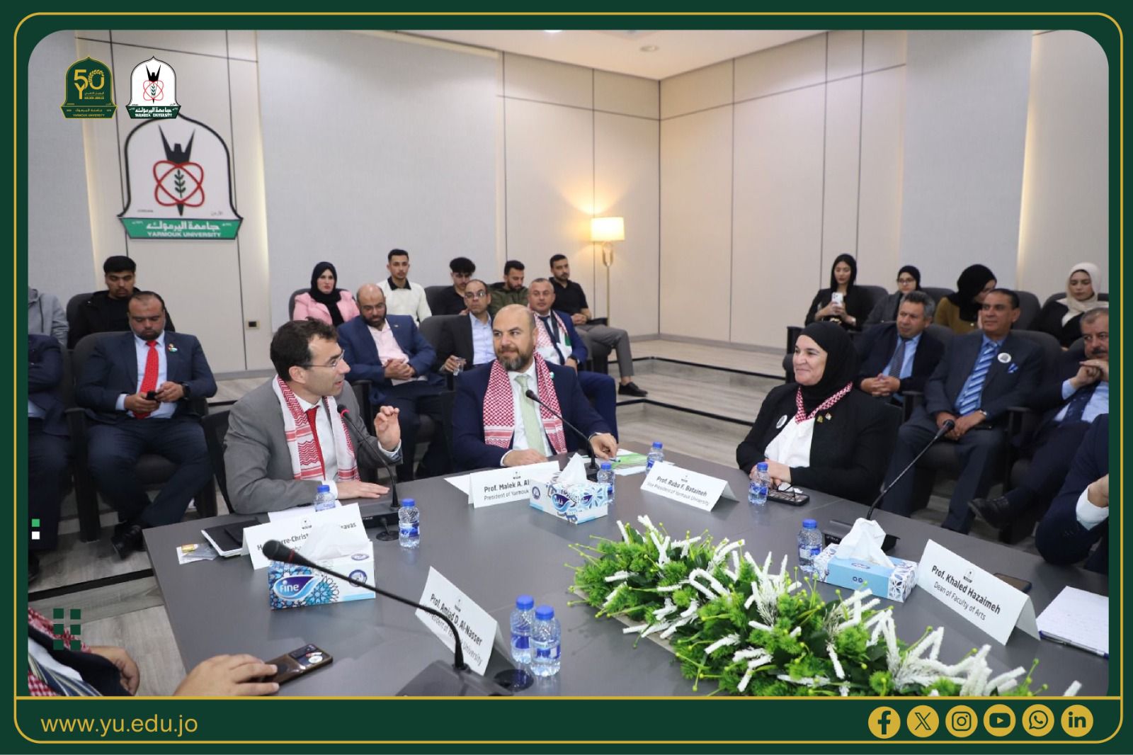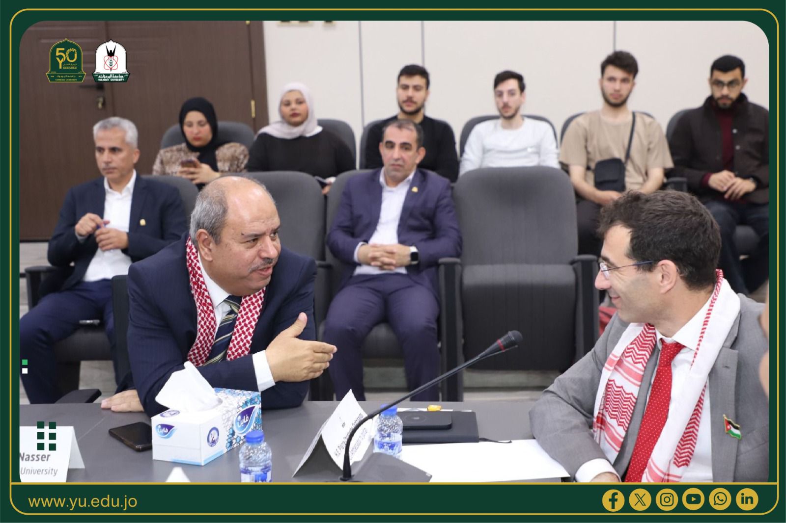 جاء ذلك خلال لقاء السفير برئيس جامعة اليرموك الأستاذ الدكتور مالك الشرايري، ومشاركته في الجلسة الحوارية التي نظمها قسم الدراسات السياسية والدولية بكلية الآداب بعنوان "العلاقات الأوروبية الأردنية"، والتي أدارها الدكتور أيمن الهياجنة، وسط حضور لافت من القيادات الأكاديمية وطلبة الجامعة.