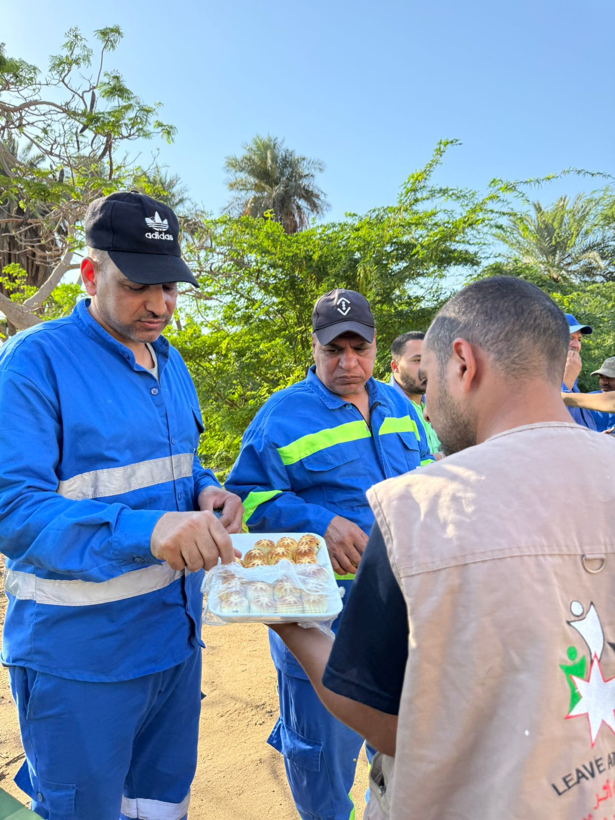 بشعار يفيض صدقاً: "تعبكم أمانة.. وابتسامتكم عيد"، جاب متطوعو المبادرة الميادين العامة، ليوزعوا الحلوى والماء البارد على السواعد التي لا تكلّ؛ من عمال نظافة وإنشاءات من مختلف الجنسيات، ممن يسطرون بعرقهم قصة صمود يومية لبناء الوطن.