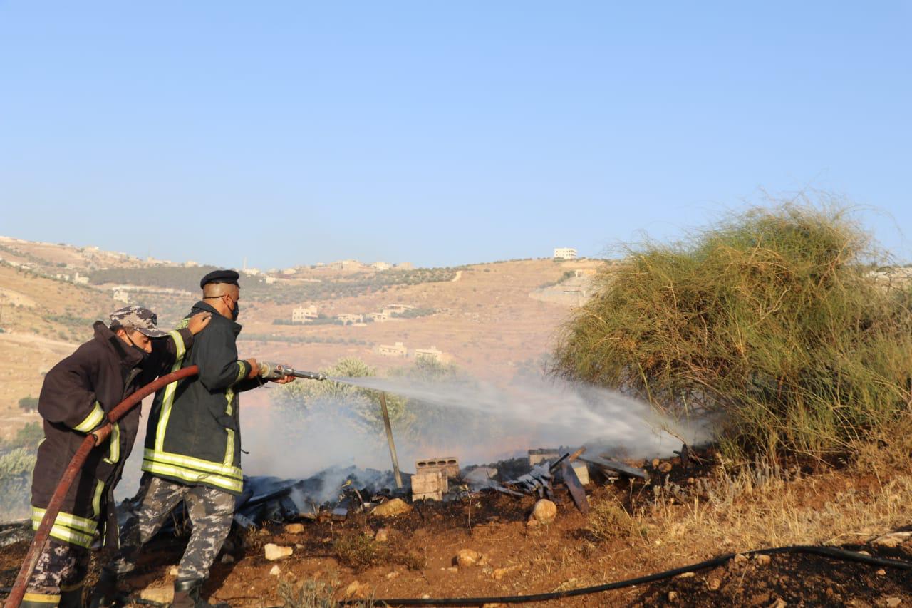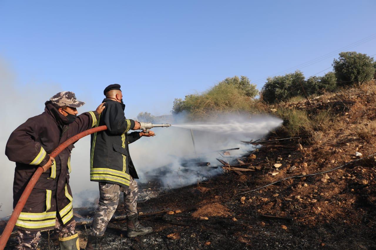إخماد حريق أعشاب جافه واشجار حرجيه ومثمره في جرش