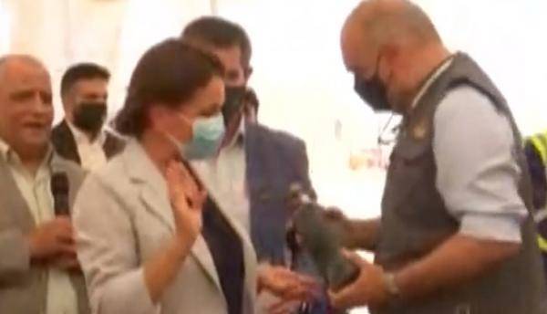 نبأ الأردن - وجه الجيولوجي بهجت العدوان صاحب فكرة اهداء رئيس الوزراء الدكتور بشر الخصاونة لزجاجة تحتوي على نفط من انتاج حقل حمزة.