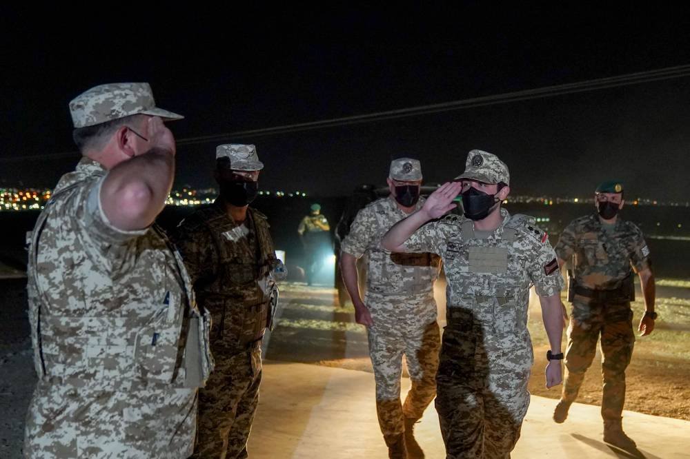 نبأ الأردن - مندوبا عن جلالة الملك عبدالله الثاني، القائد الأعلى للقوات المسلحة، سمو الأمير الحسين بن عبدالله الثاني، ولي العهد، يتابع تمرين "صقور الهواشم" الليلي، ضمن فعاليات تخريج "دورة الطيران التعبوي المتقدم/10".
