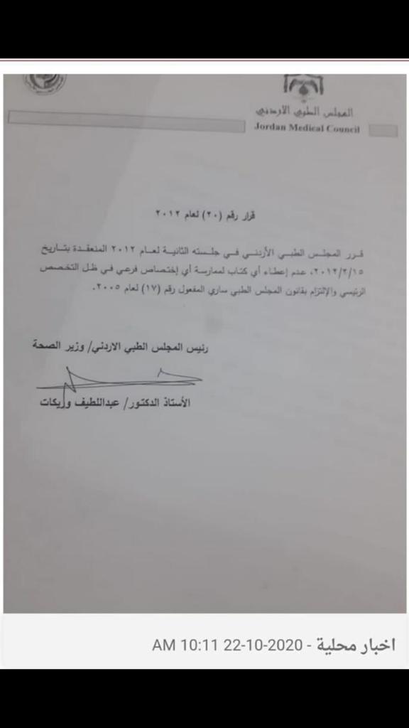 نبأ الأردن- ناشد الأطباء من حملة البورد الأجنبي والعاملين في وزارة الصحة وزير الصحة د.فراس الهواري بإنصافهم وحل ملفهم العالق بتقييم شهاداتهم وبورداتهم الأجنبية وذلك إسوة بكل من عادل قبلهم لا سيما المعادلات الأخيرة التي تخص الشهادات الفرعية رغم مخالفتها لنص قانون المجلس الطبي الصريح و وجود كتاب رسمي سابق يمنع هذه المعادلات .