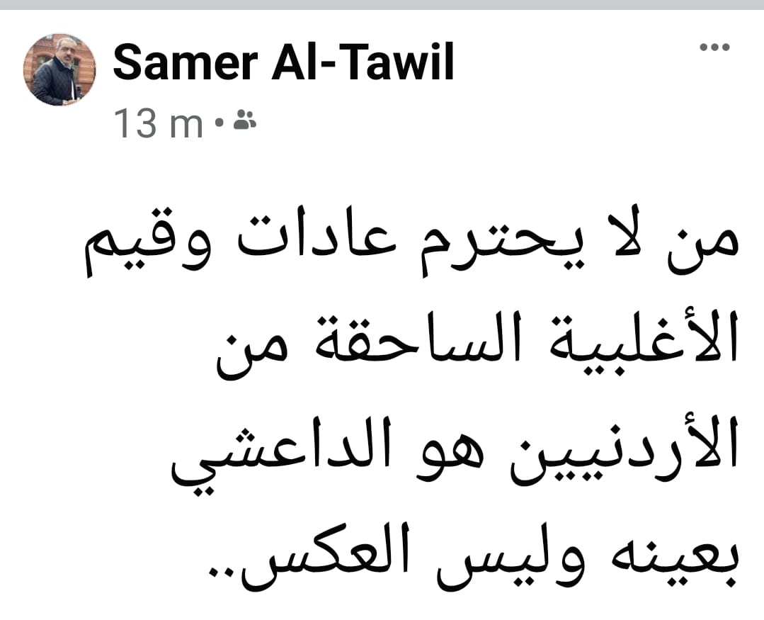 من لا يحترم عادات وقيم الأغلبية الساحقة من الأردنيين هو الداعشي بعينه وليس العكس".