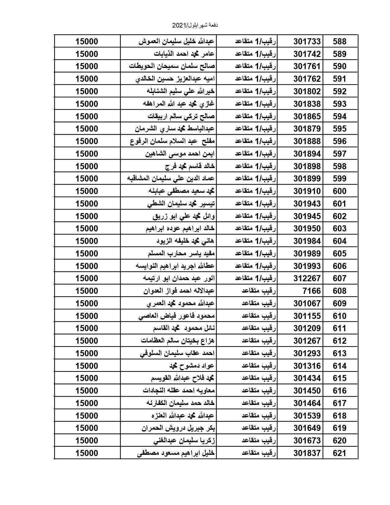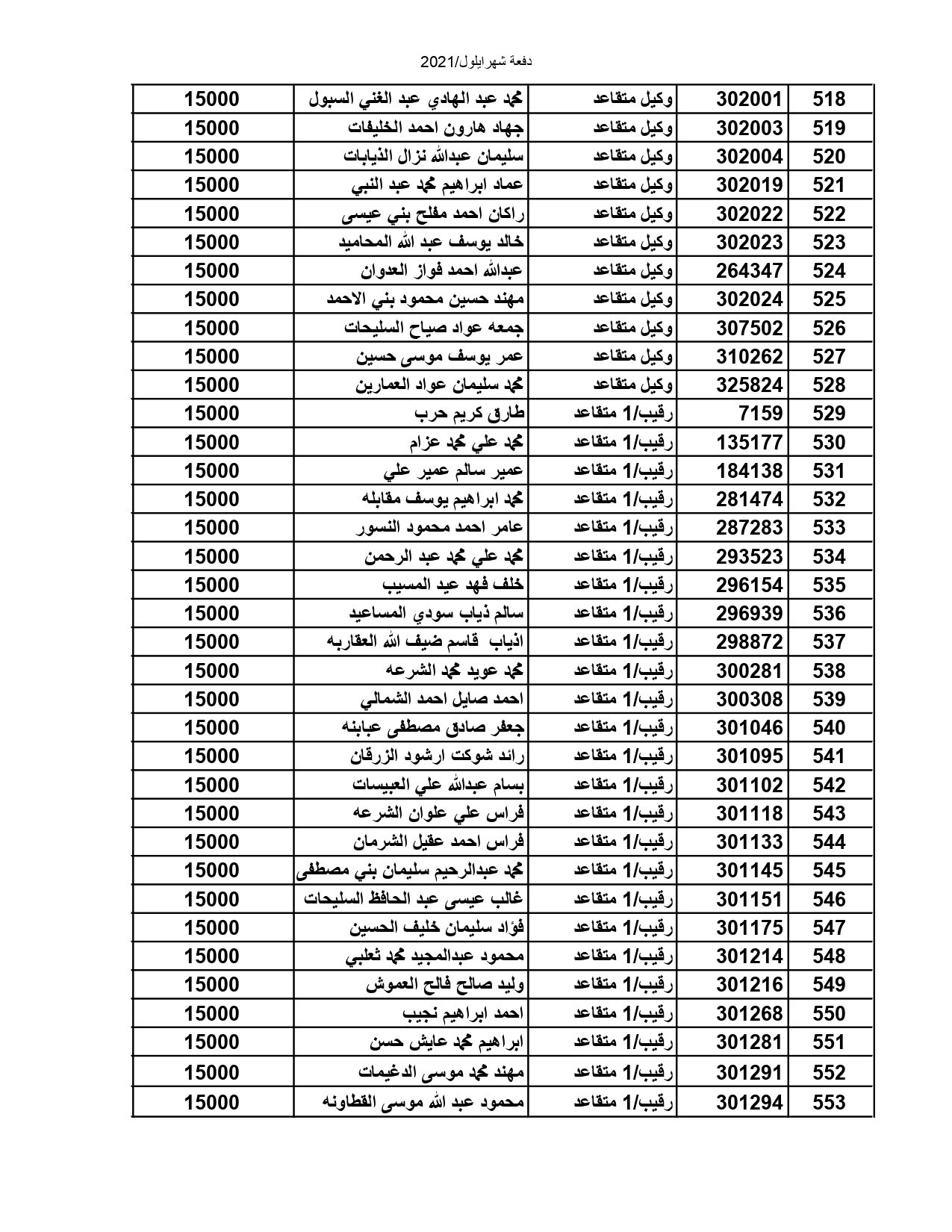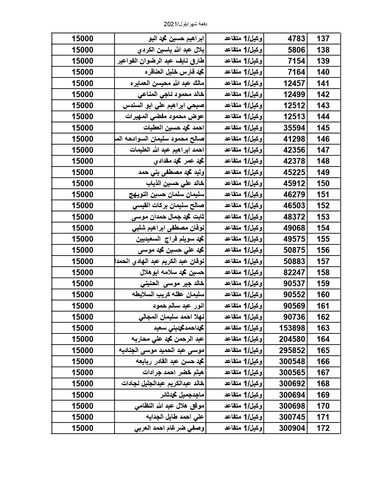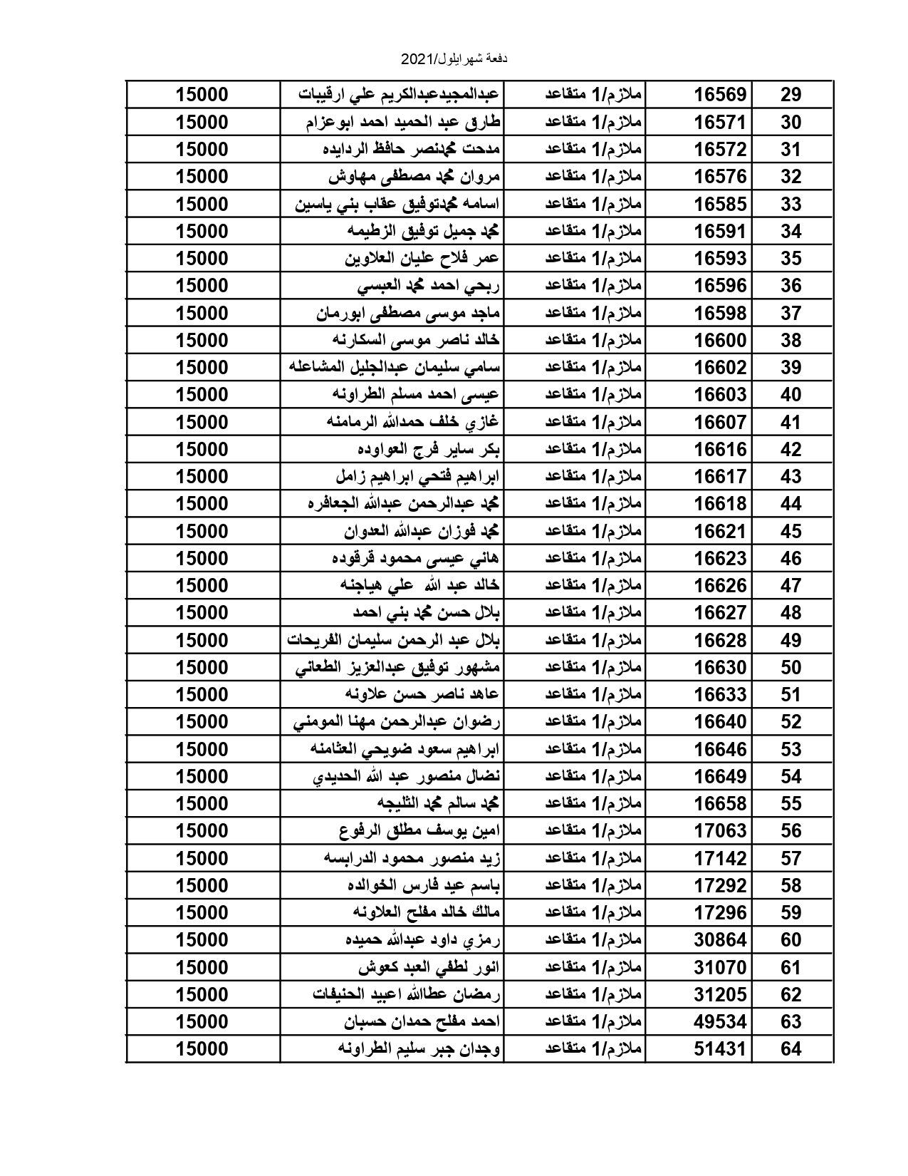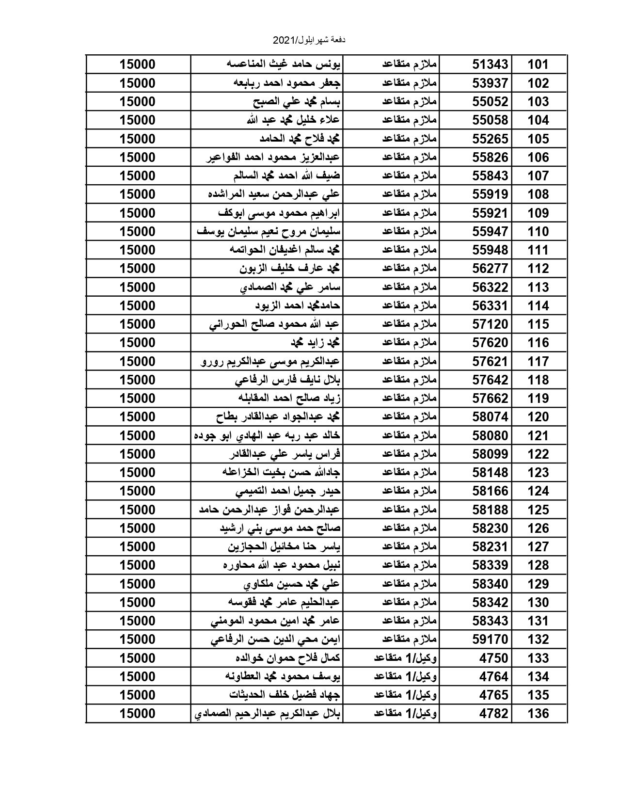 نبأ الأردن- أعلنت القيادة العامة للقوات المسلحة الأردنية – الجيش العربي/ مديرية مؤسسة الإسكان والأشغال العسكرية بأن الضباط وضباط الصف وافراد المبينة أسماءهم أدناه قد استحقوا الحصول على القرض من صناديق الإسكان العسكري.