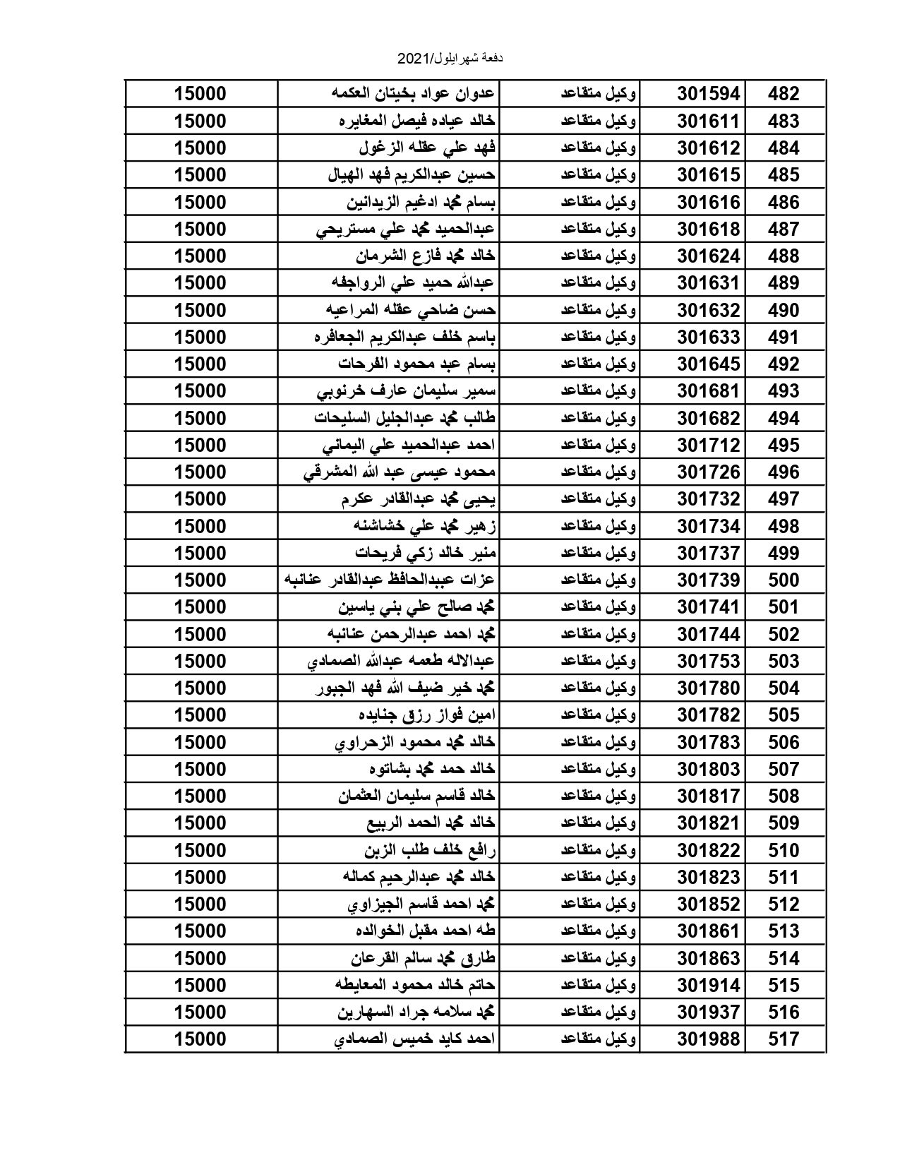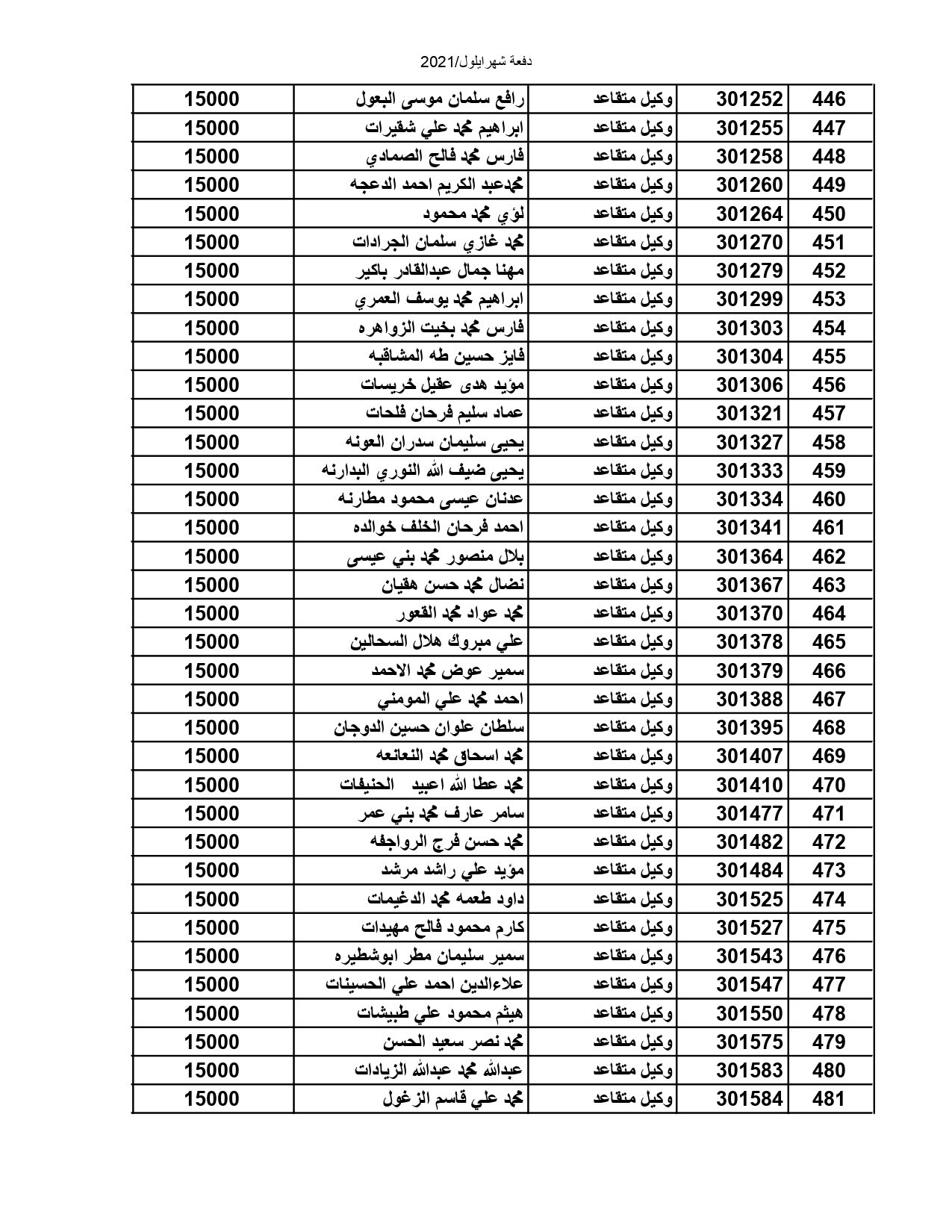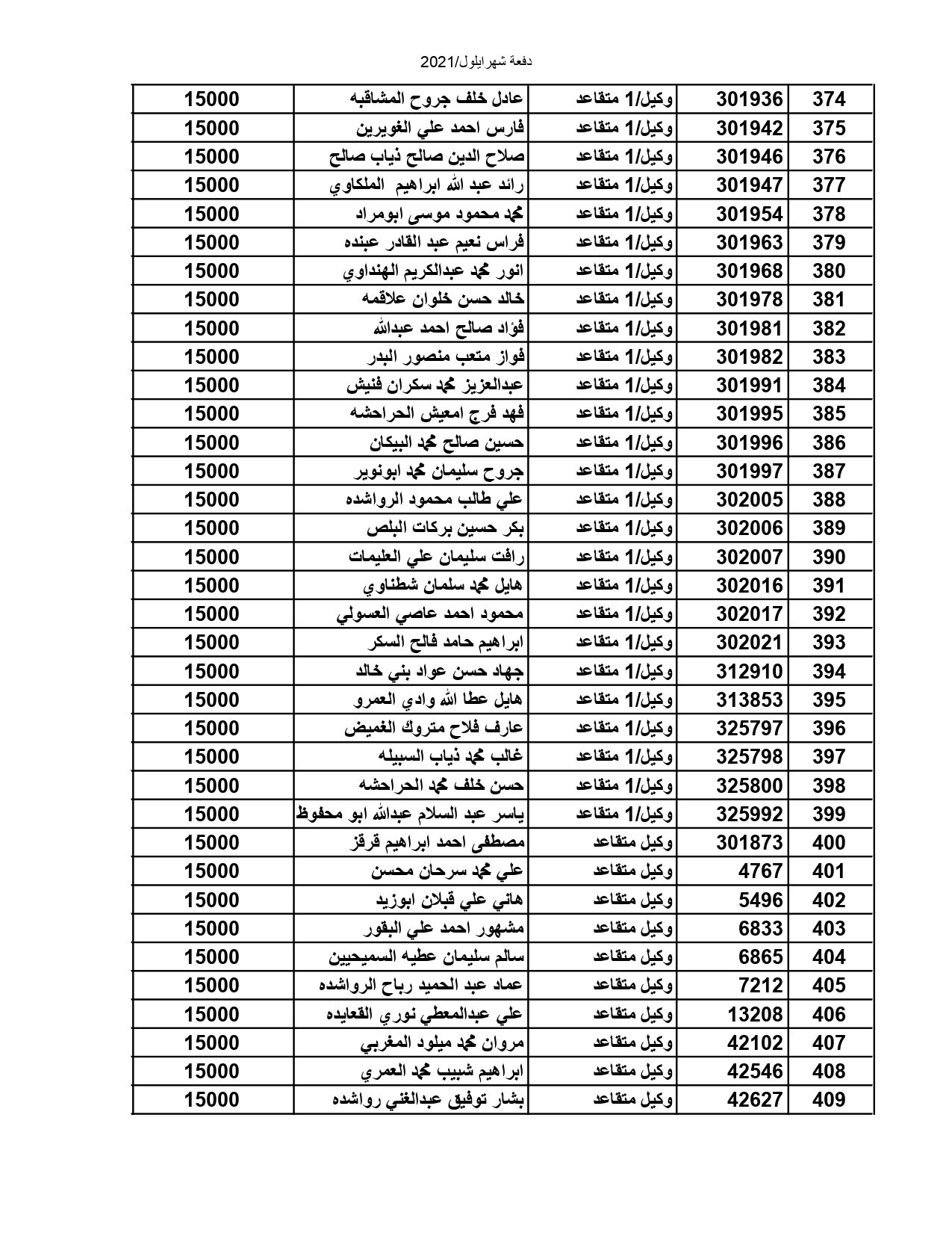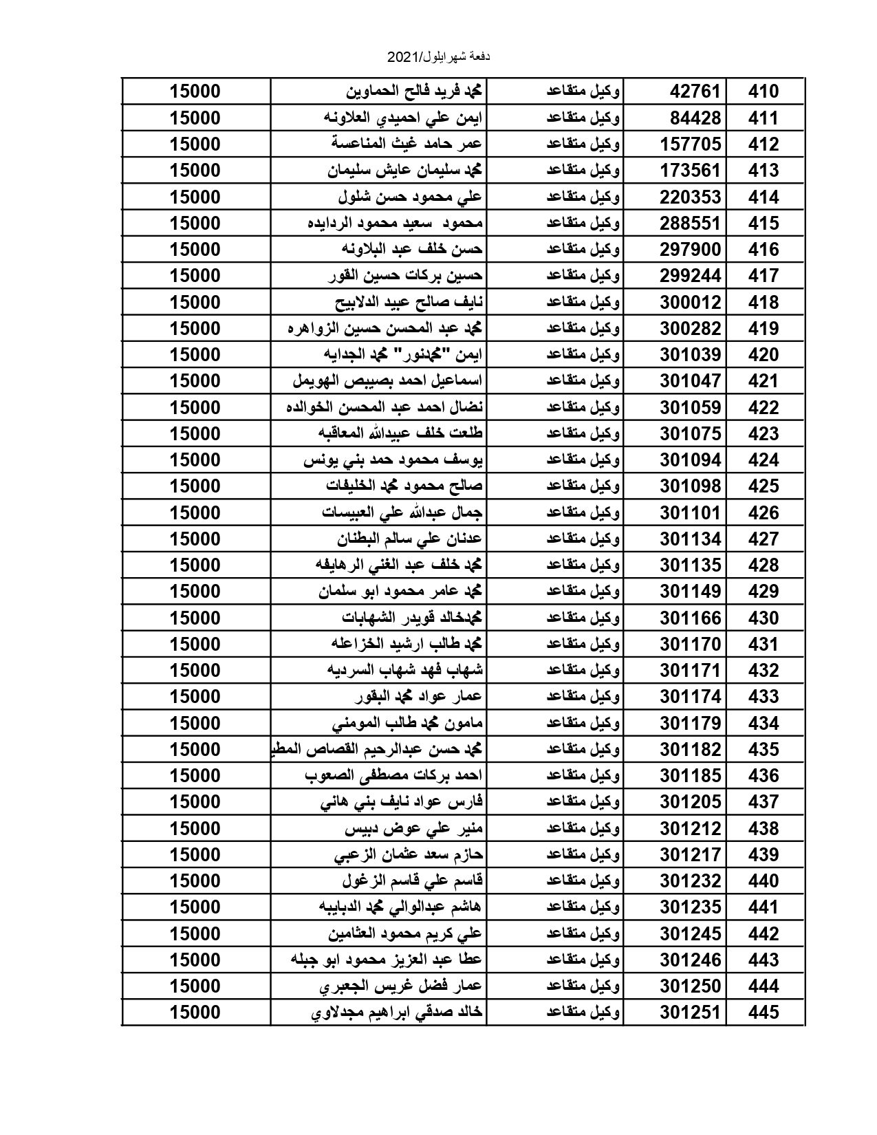 نبأ الأردن- أعلنت القيادة العامة للقوات المسلحة الأردنية – الجيش العربي/ مديرية مؤسسة الإسكان والأشغال العسكرية بأن الضباط وضباط الصف وافراد المبينة أسماءهم أدناه قد استحقوا الحصول على القرض من صناديق الإسكان العسكري.