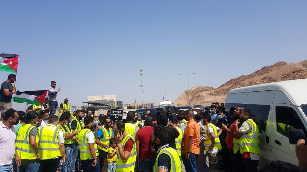 نبأ الأردن- نظم العاملون على نظام العقود في شركة ميناء حاويات العقبة وقفة احتجاجية على باب الشركة للمطالبة بتثبيتهم على كادر الشركة.