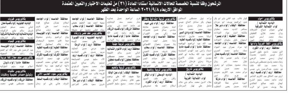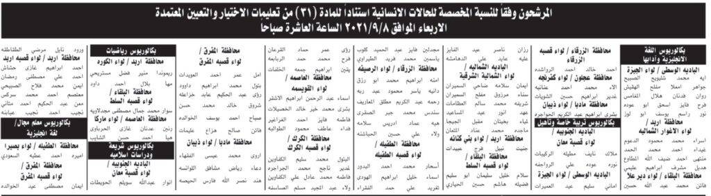 نبأ الأردن- دعا ديوان الخدمة المدنية التالية أسماءهم مراجعة مبنى الديوان بتاريخ 8-9-2021 لتقديم الإمتحان التنافسي لشغل وظيفة معلم.