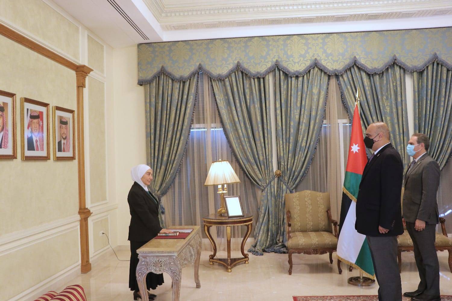 نبأ الأردن-ادت الدكتورة رائدة القطب اليمين القانونية امام رئيس الوزراء الدكتور بشر الخصاونة بعد صدور الارادة الملكية السامية بتعيينها رئيسا للمركز الوطني لمكافحة الاوبئة والامراض السارية .