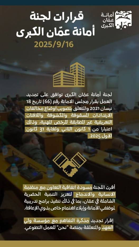 عاجل - قرارات لجنة أمانة عمّان الكبرى