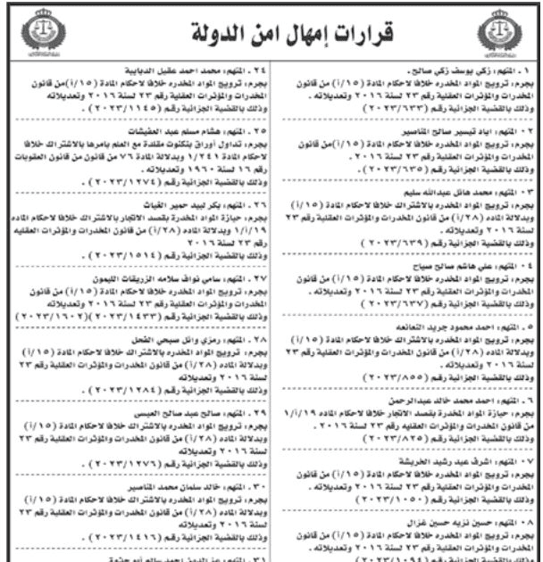 أمن الدولة تُمهل متهمين 10 أيام لتسليم أنفسهم (أسماء)2023-02-02 08:14:54 -