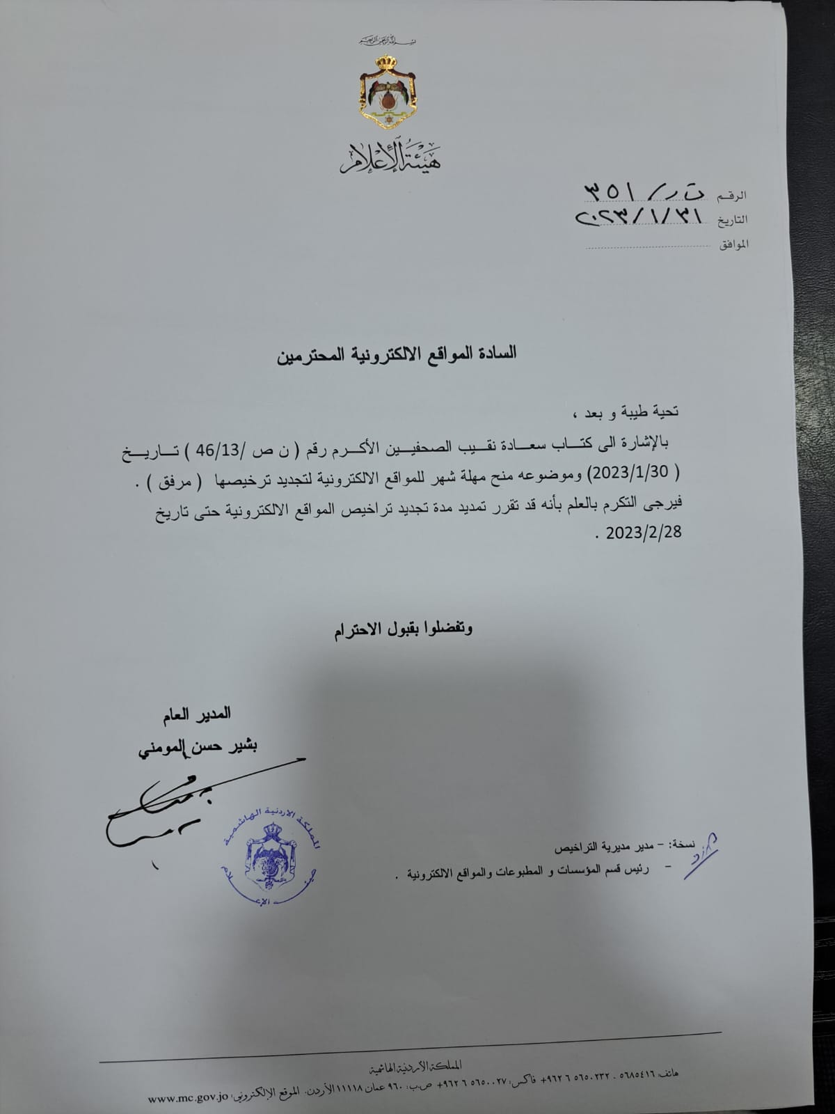 عاجل- تمديد فترة ترخيص المواقع الالكترونية2023-01-31 14:10:20 -