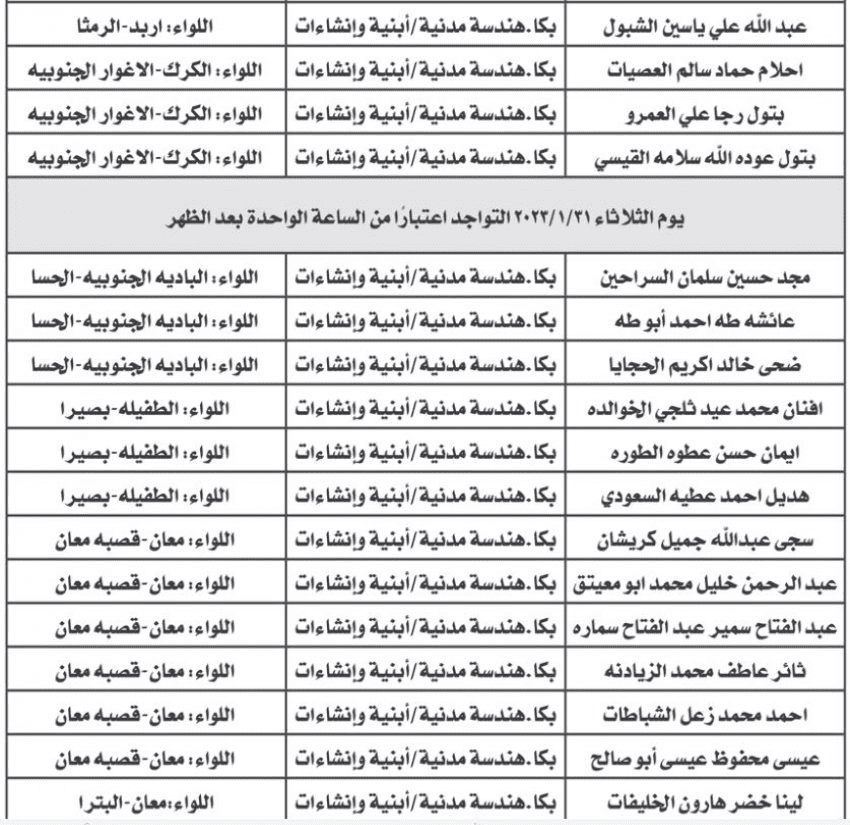 وظائف شـاغرة ومدعوون للمقابلات - اسماء2023-01-29 08:15:53 -