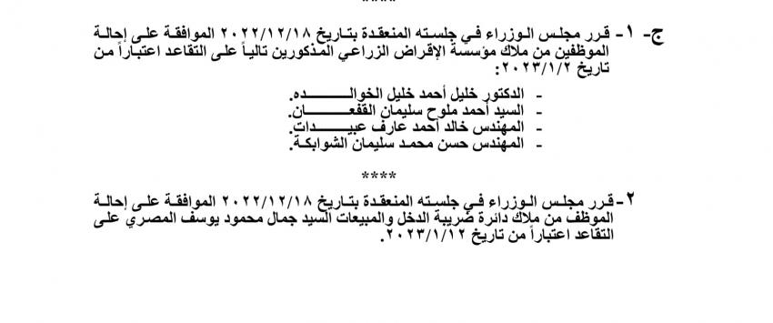 موظفون حكوميون إلى التقاعد (اسماء)2023-01-02 19:49:30 -