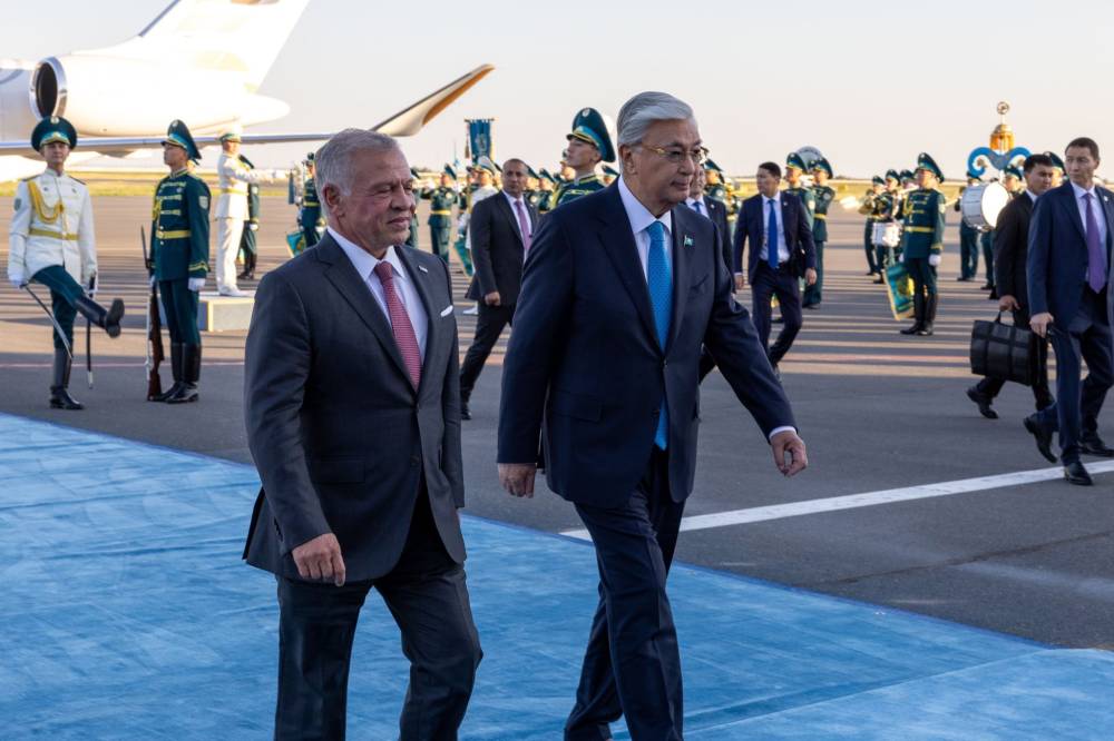 عاجل-رئيس جمهورية كازاخستان قاسم جومارت توكاييف في استقبال جلالة الملك عبدالله الثاني لدى وصول جلالته مطار نور سلطان نزارباييف الدولي