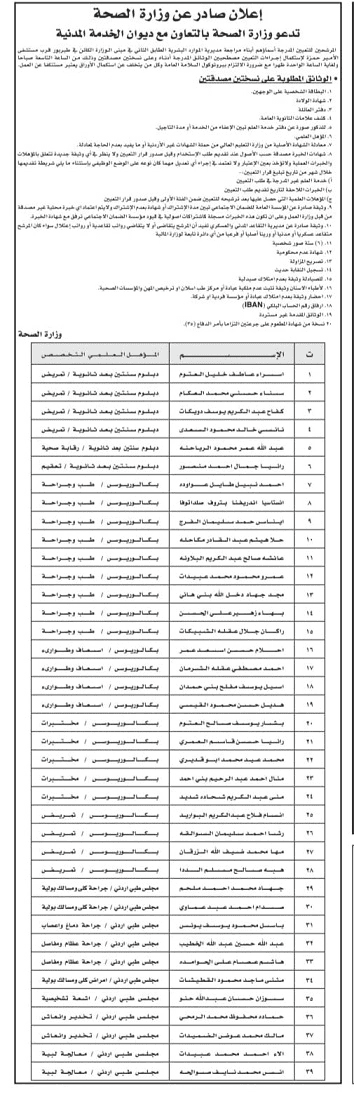 مدعوون للتعيين في وزارة الصحة - أسماء2022-12-07 07:53:24 -
