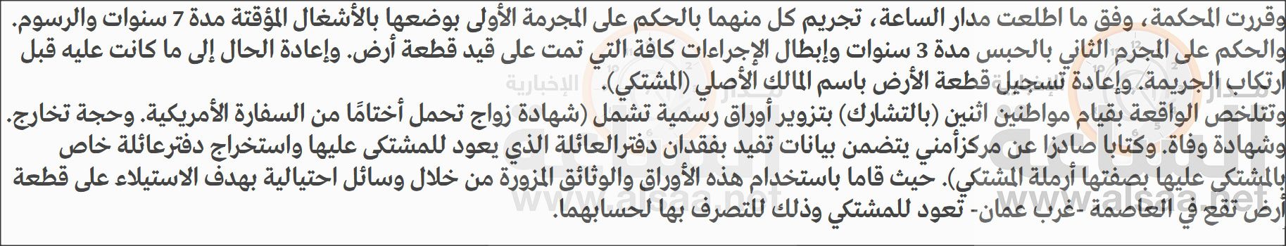 الأردن.. محكمة تنقذ قطعة أرض من احتيال شيطاني2022-11-15 18:46:02 -