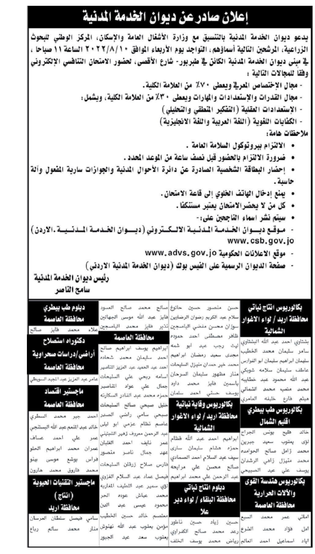 مدعوون لحضور الامتحان التنافسي (أسماء)2022-08-04 08:58:08