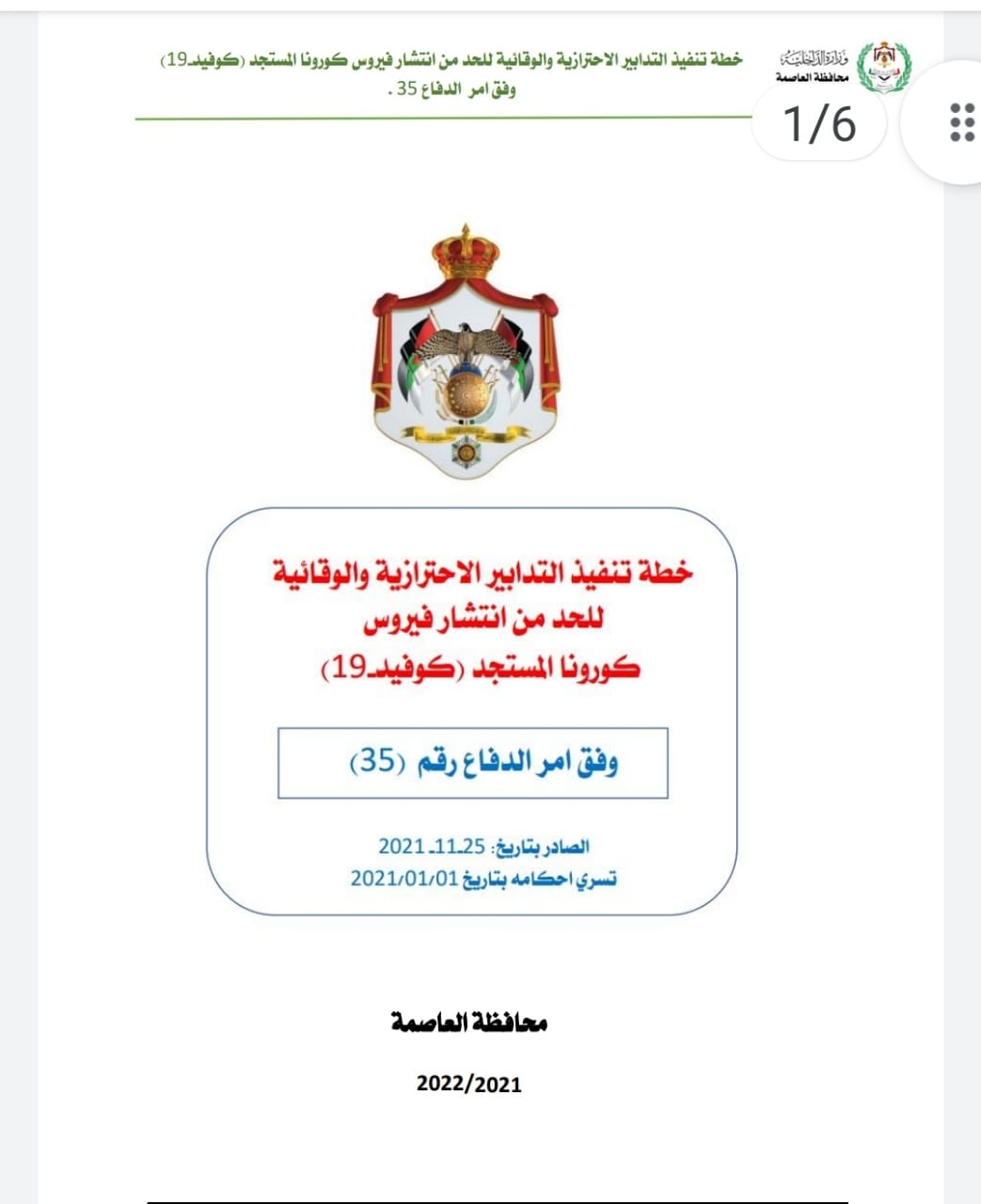 تعرف على الاجراءات الاحترازية لمنع انتشار كورونا حسب أمر الدفاع 352022-01-01 21:03:07 -