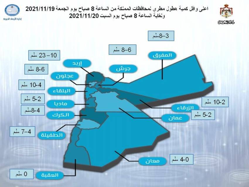 بالأرقام .. معدلات هطول الأمطار في المحافظات2021-11-20 13:42:45 -