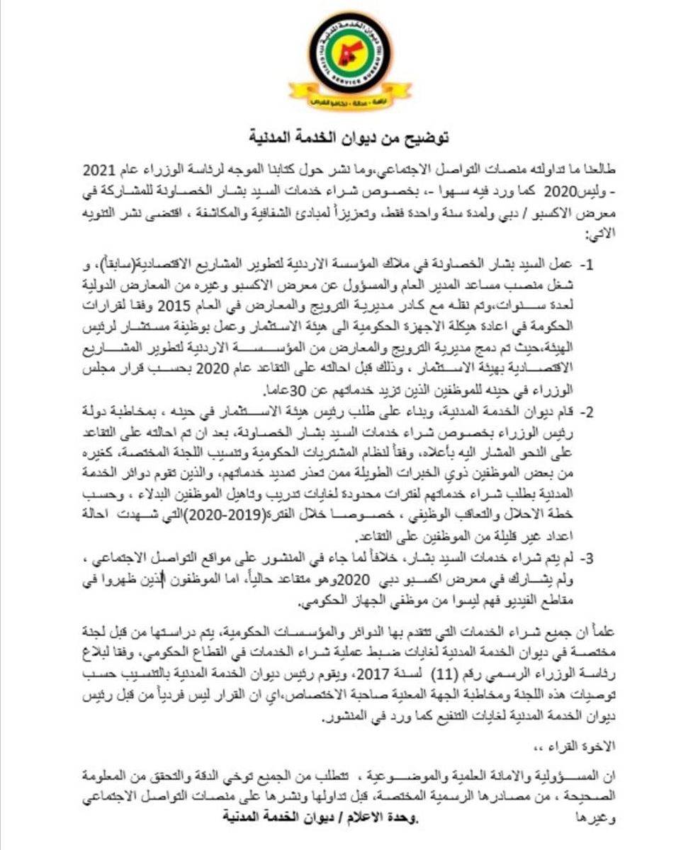 الخدمة المدنية: لم يتم شراء خدمات الخصاونة2021-11-14 21:27:32 -
