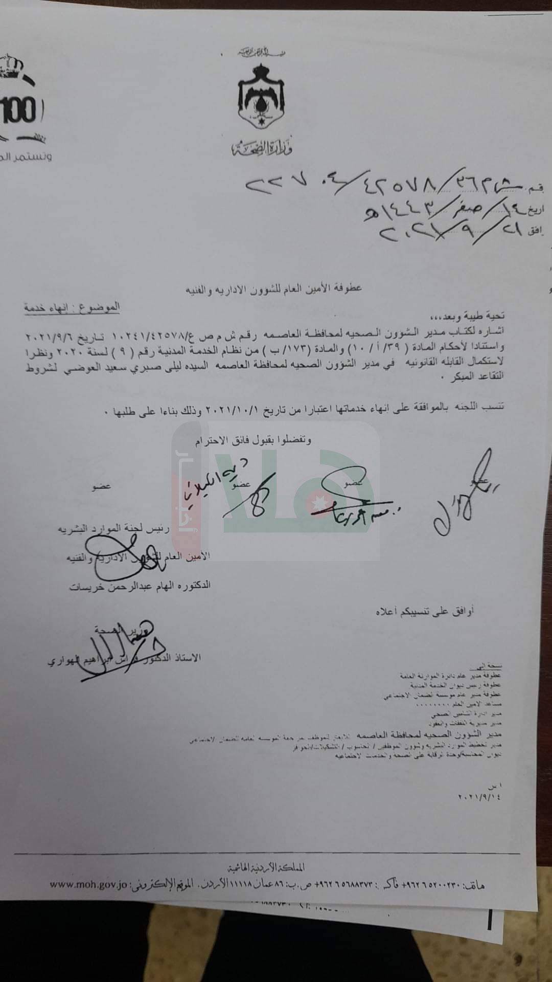 إحالات وإنهاء خدمات في الصحة - أسماء2021-09-22 11:44:54 -