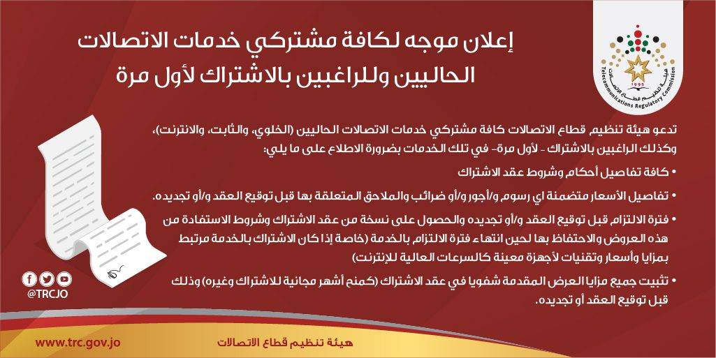 الاتصالات توجه نصائح لمشتركي خدمات الإنترنت والاتصال في الأردن2021-06-20 16:10:30 -