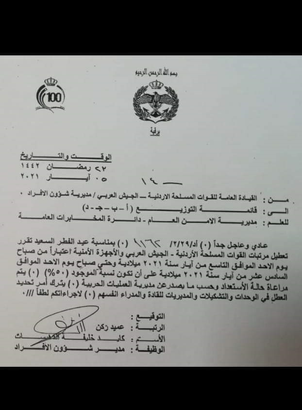 تحديد موعد عطلة الاجهزة الامنية في العيد2021-05-06 09:39:12 -