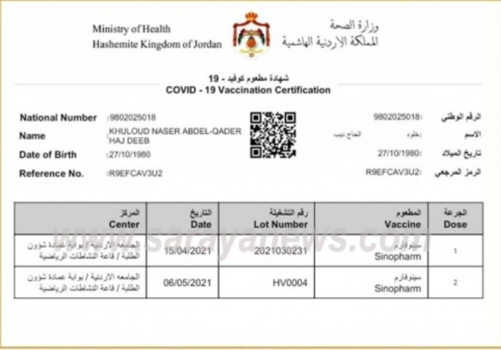 إعلامية أردنية : حصلت على "شهادة المطعوم" مع أنني تلقيت الجرعة الأولى فقط!2021-05-06 14:48:33 -