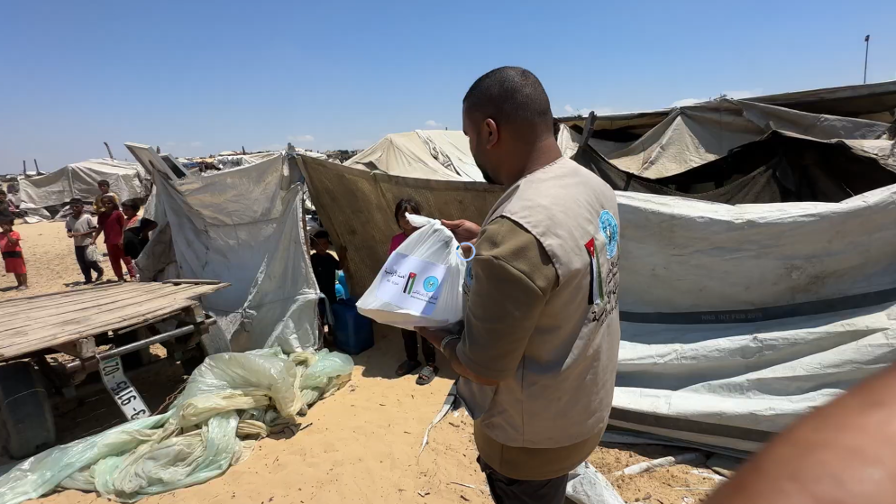 الحملة الأردنية توزع وجبات غذائية في مواصي خان يونس