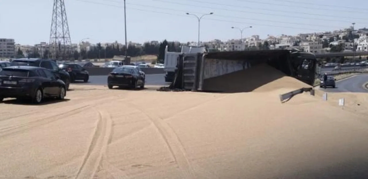 تدهور قلاب رمل يتسبب بازدحام خانق على طريق المطار
