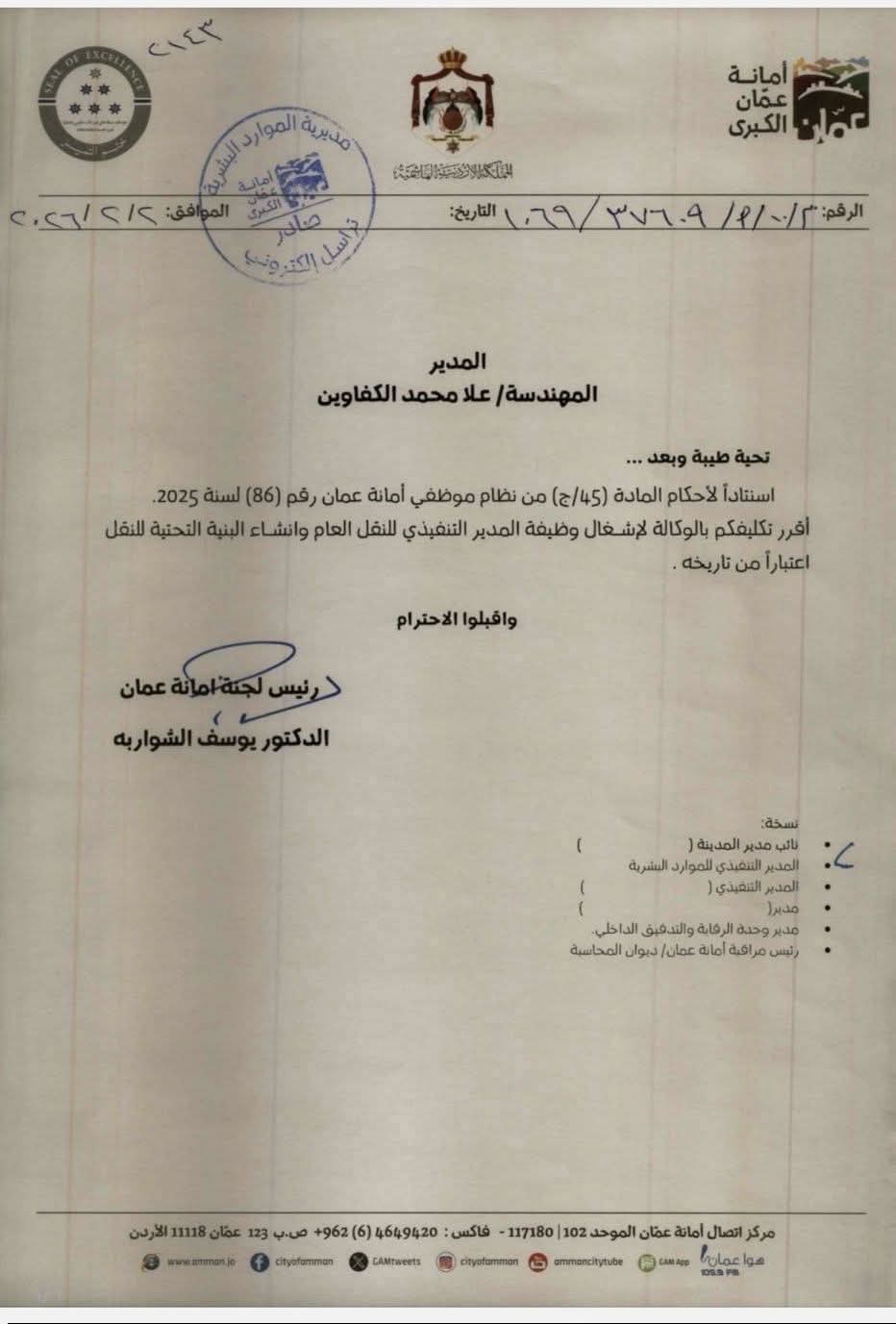 المهندسة علا الكفاوين مدير التنفيذي للنقل العام وإنشاء البنية التحتية للنقل في أمانة عمان