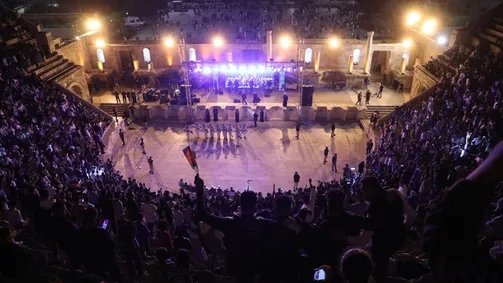 احتشاد جماهيري في المدرج الروماني بثالث أيام العيد