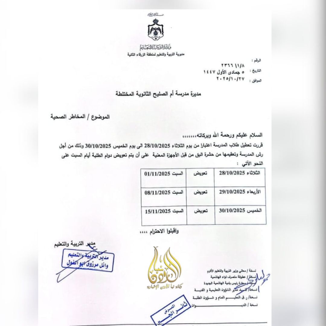 تعطيل طلبة مدرسة حكومية في الزرقاء بسبب البق