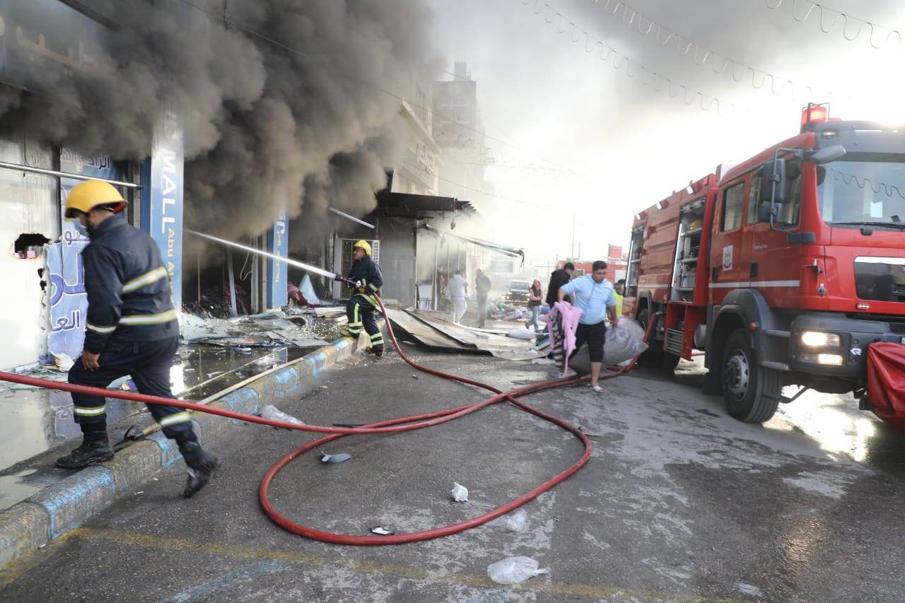كوادر الدفاع المدني تخمد حريقاً بمحل ملابس في عمان - صور